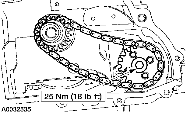 16. NOTE: The oil pump chain sprocket must be held in place.