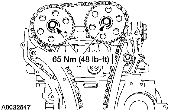 Install the camshaft sprockets and the bolts. Do not tighten the sprocket bolts at this time.