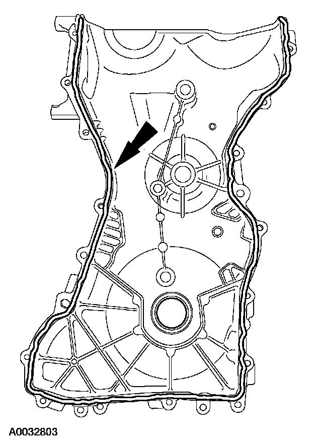 30. Apply a 2.5 mm bead of silicone gasket and sealant to the front cover.