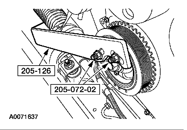 NOTE: Installing the special tool in this step will prevent the engine from being rotated in the clockwise direction. However, the engine can still be rotated in the counterclockwise direction.