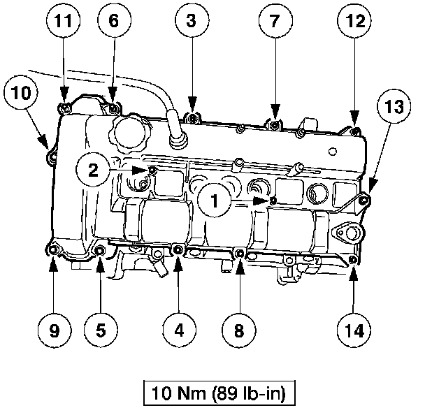 90. Tighten the bolts in the sequence shown in three stages.