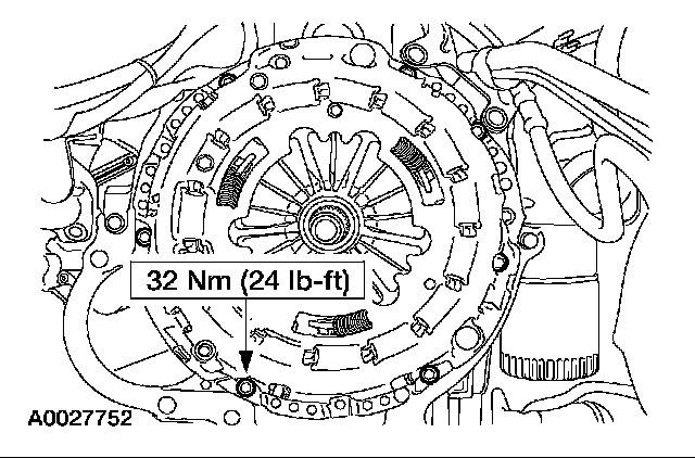 Position the clutch pressure plate and install the bolts. Tighten the bolts in a star pattern sequence.