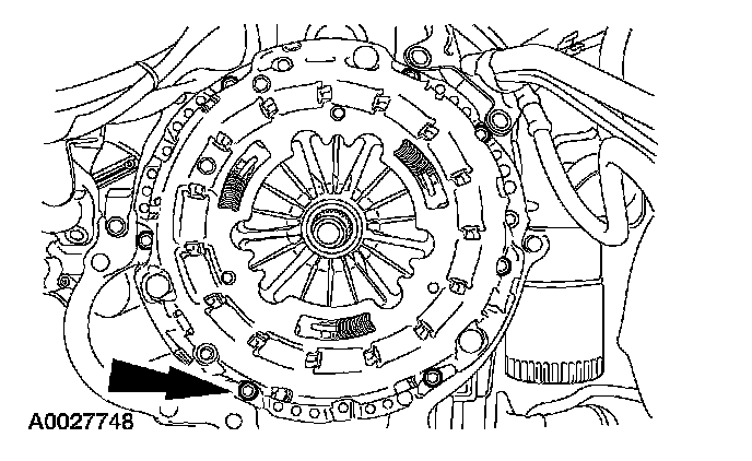 NOTE: If the parts are to be reused, index-mark the clutch pressure plate to the flywheel.