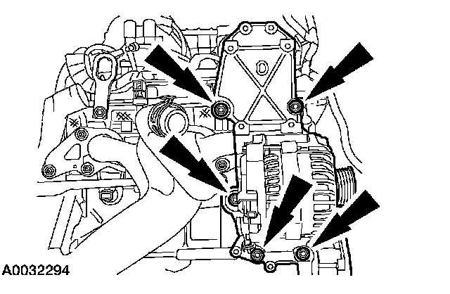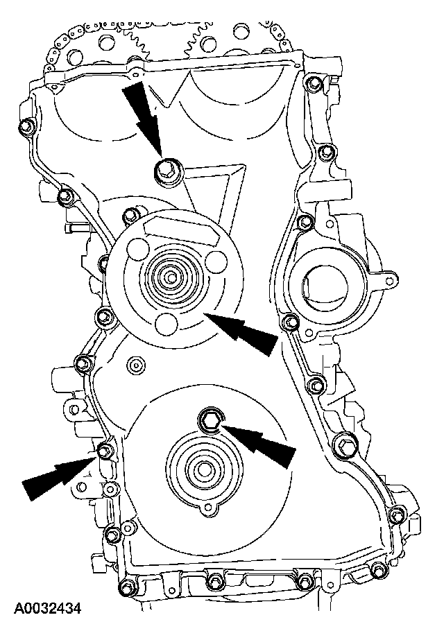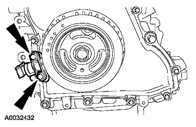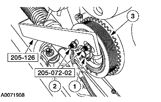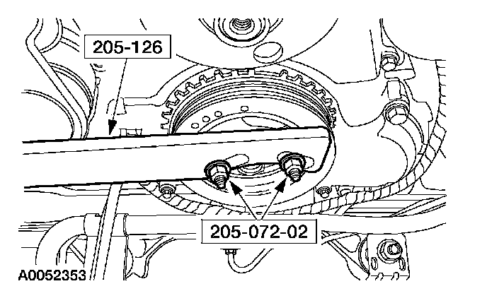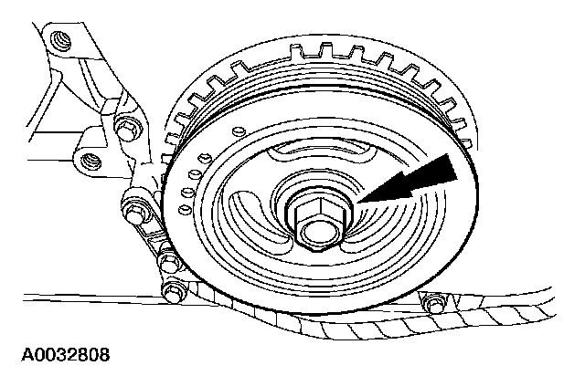 NOTICE: Do not loosen or remove the crankshaft pulley bolt without first installing the special tools as instructed in this procedure. The crankshaft pulley and the crankshaft timing sprocket are not keyed to the crankshaft. The crankshaft, the crankshaft sprocket and the pulley are fitted together by friction, using diamond washers between the flange faces on each part. For that reason, the crankshaft sprocket is also unfastened if the pulley bolt is loosened. Before any repair requiring loosening or removal of the crankshaft pulley bolt, the crankshaft and camshafts must be locked in place by the special tools, otherwise severe engine damage may occur. Service and Repair