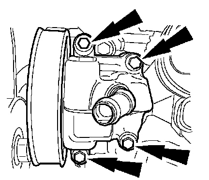 44. CAUTION: There is one front cover bolt behind the cooling fan drive pulley. To remove this bolt, align one of the cooling fan drive pulley access holes with the bolt head.