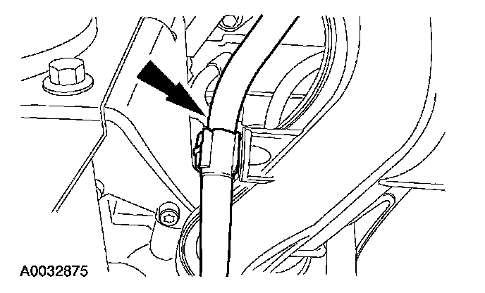 24. Detach the fuel supply hose clip from the front of the intake manifold.