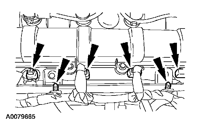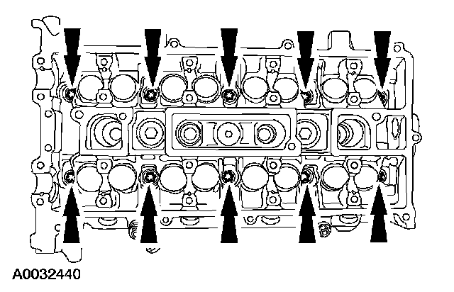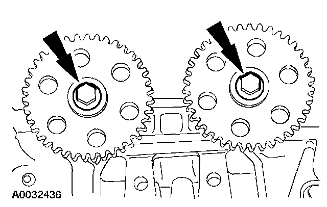 NOTE: Note the position of the lobes on the No. 1 cylinder before removing the camshafts for assembly reference.