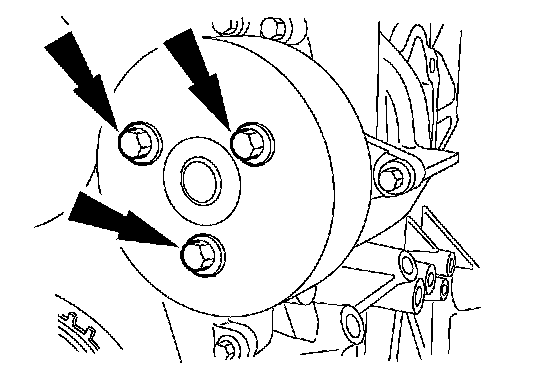 43. CAUTION: Failure to hold the crankshaft pulley in place while loosening the bolts can cause damage to the engine.