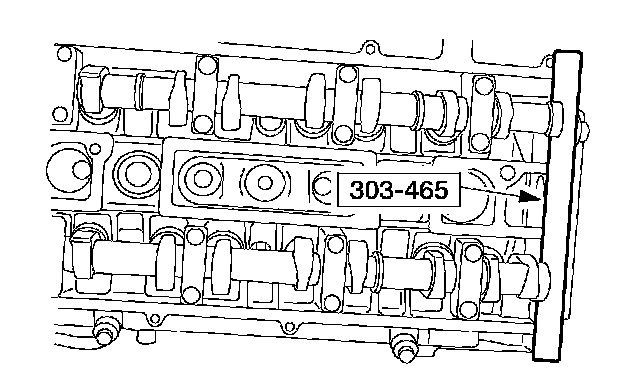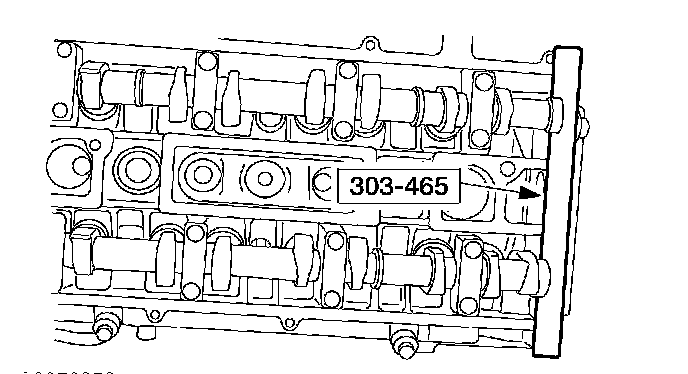 41. CAUTION: The special tool 303-465 is for camshaft alignment only. Using this tool to prevent engine rotation can result in engine damage.