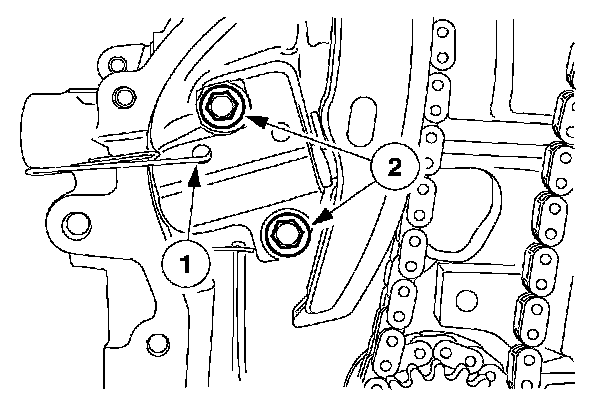 1 Compress the timing chain tensioner plunger and insert a paper clip into the location shown.