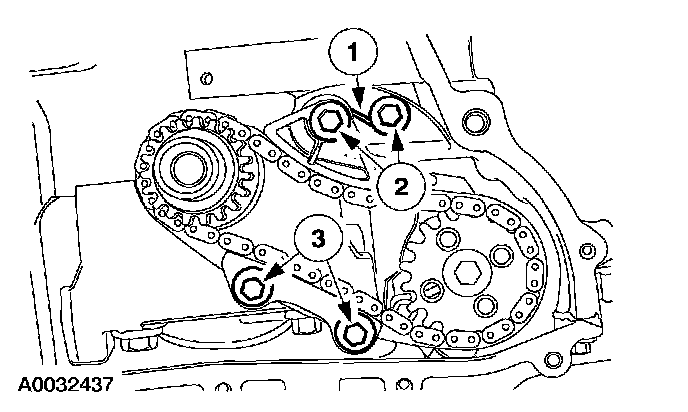 NOTE: The camshaft timing slots are offset. If the special tool cannot be installed, rotate the crankshaft one complete revolution clockwise to correctly position the camshafts.