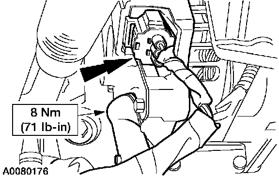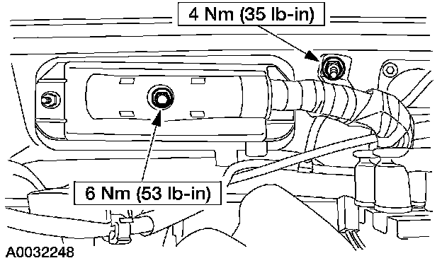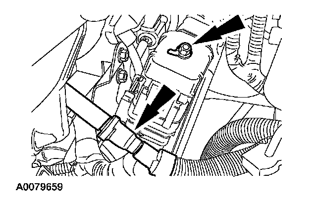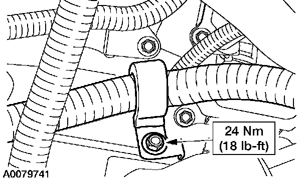 46. Position the PCM harness. Install the retaining nut on the harness clamp. Connect the PCM connector.