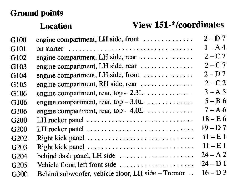 If a link on the Ground Location Index to a View is not provided, that means that the Ground and/or View in question does NOT apply to the vehicle model selected.