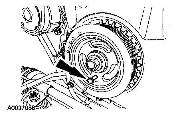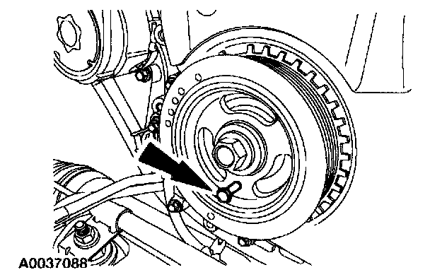 5. Install the special tool and turn the crankshaft pulley bolt to position the number one cylinder at top dead center.