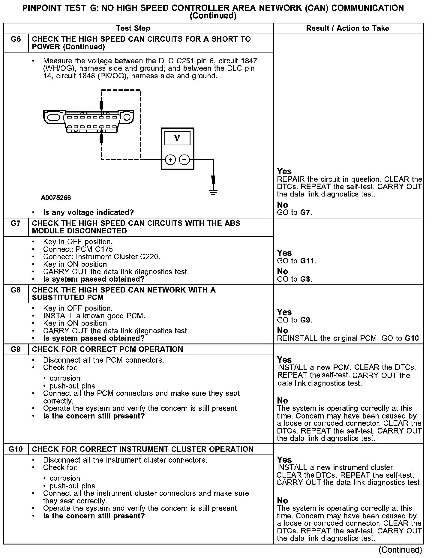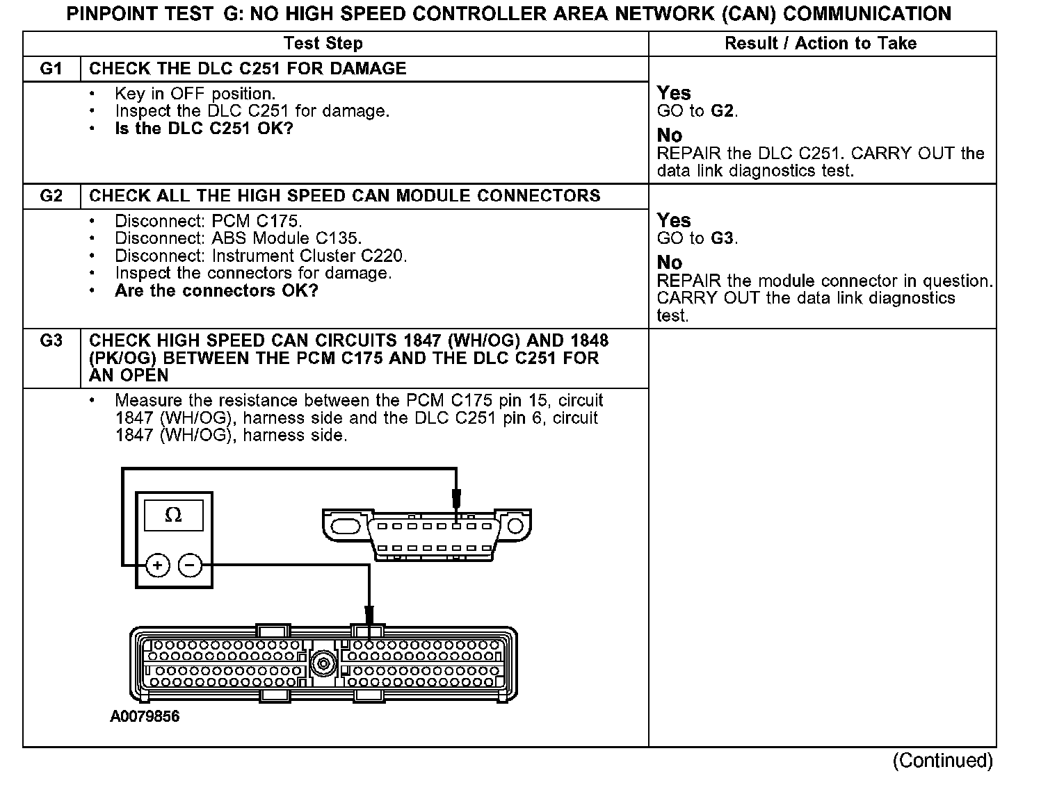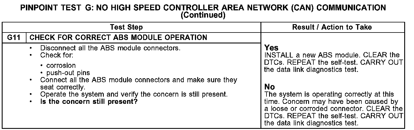 PINPOINT TEST G: NO HIGH SPEED CONTROLLER AREA NETWORK (CAN) COMMUNICATION