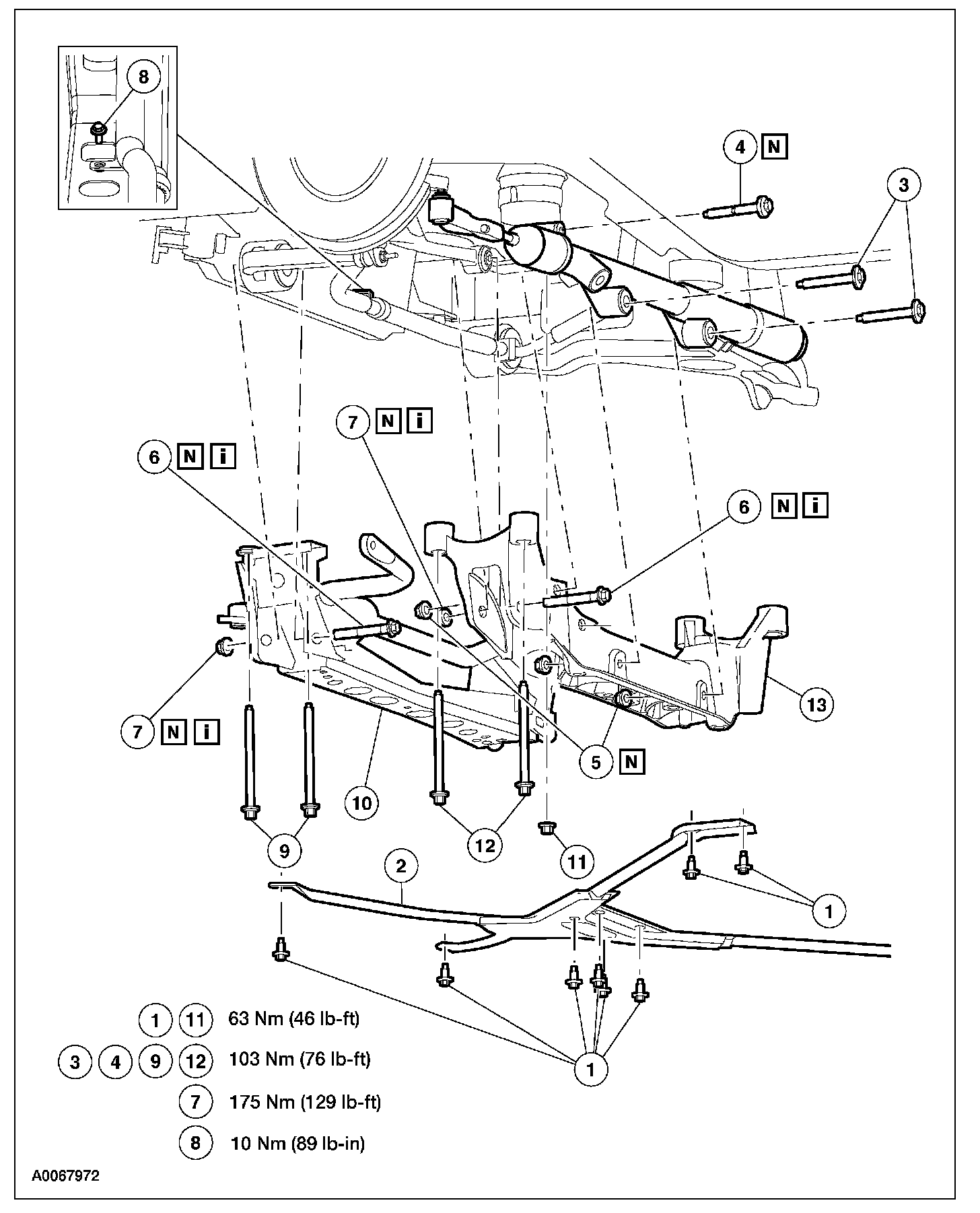 CAUTION: Suspension fasteners are critical parts because they affect the performance of vital components and systems and their failure can result in major repair expense. A new part with the same part number must be installed if installation is necessary. Do not use a new part of lesser quality or substitute design. Torque values must be used as specified during reassembly to make sure of correct retention of these parts.