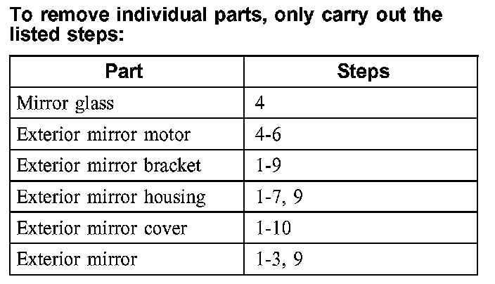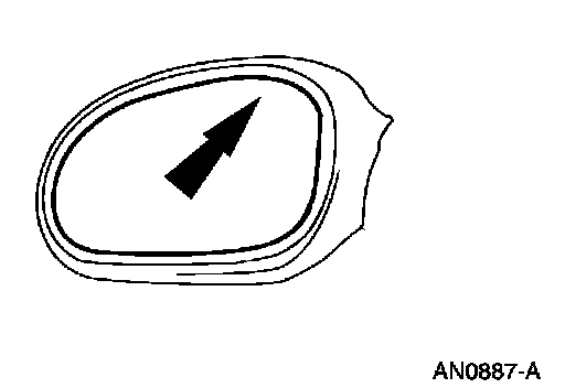 1. Position the inner edge of the exterior rear view mirror glass to its maximum travel.