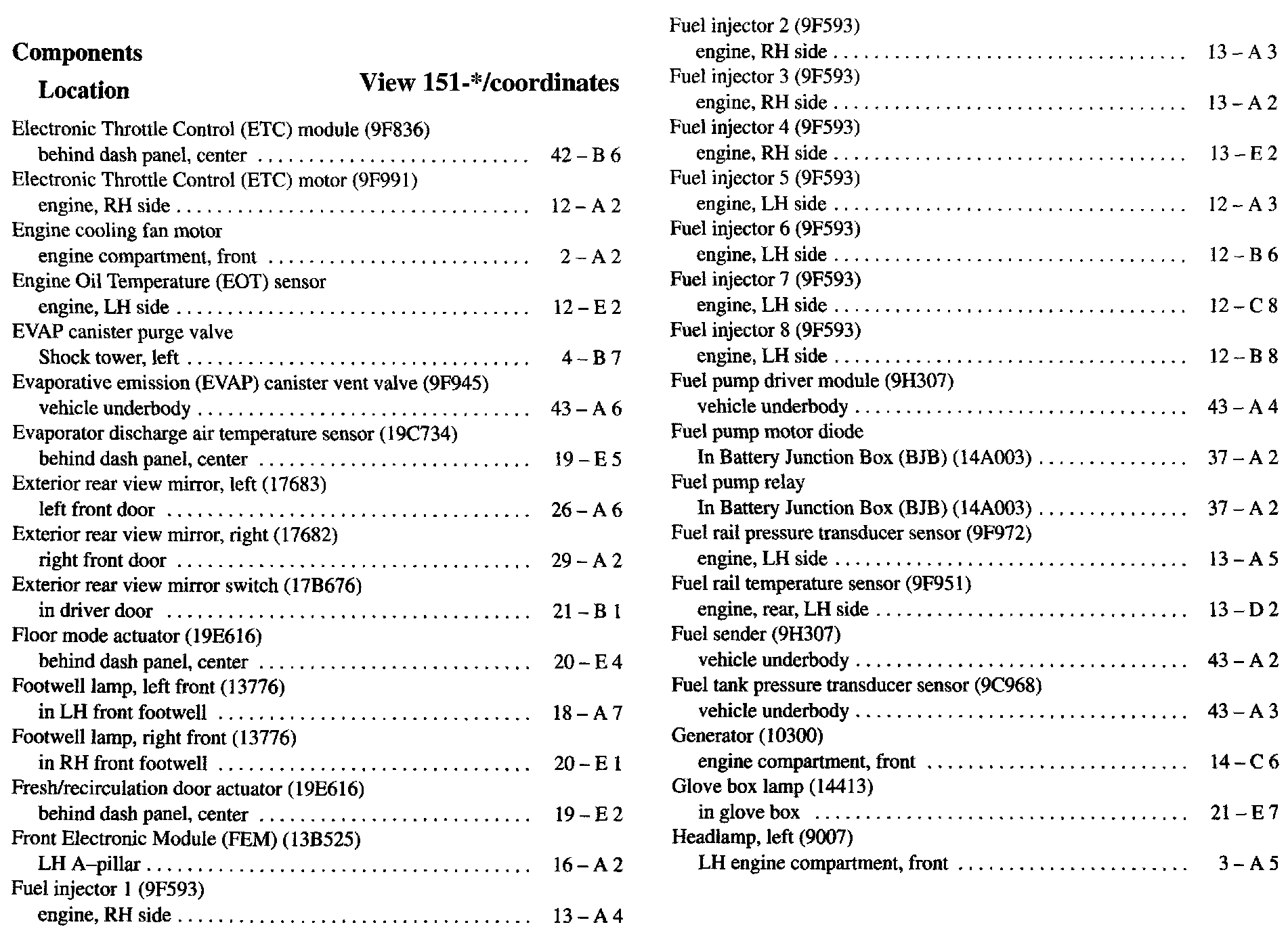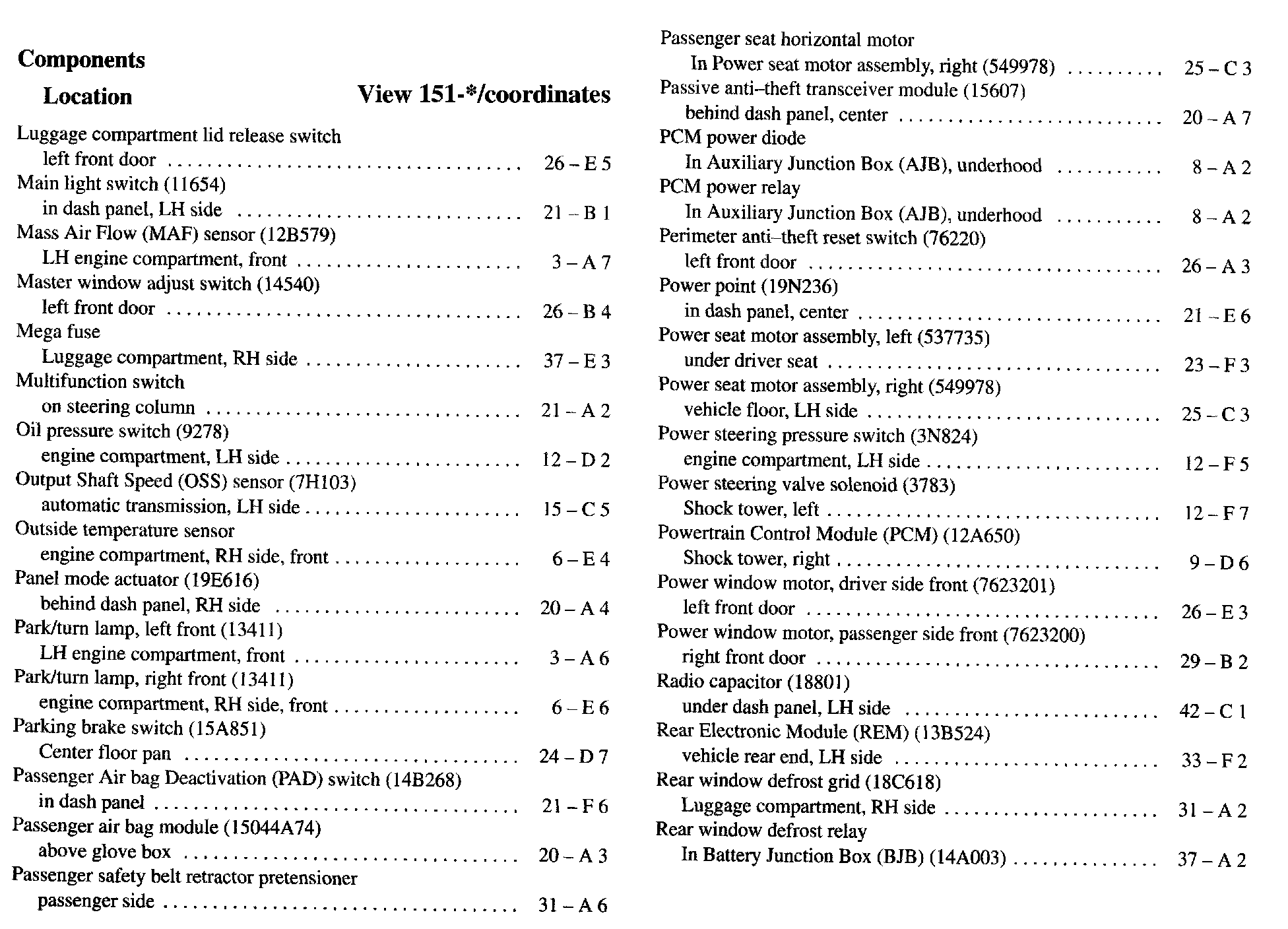Component Location Index