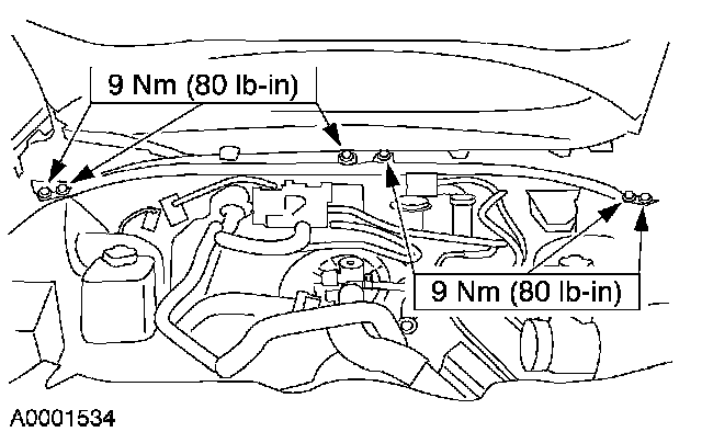 2. Remove the nuts and the engine wiring harness retainer and position aside.