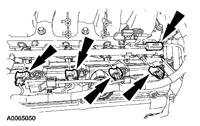 Disconnect the fuel injector and RFI suppressor electrical connectors