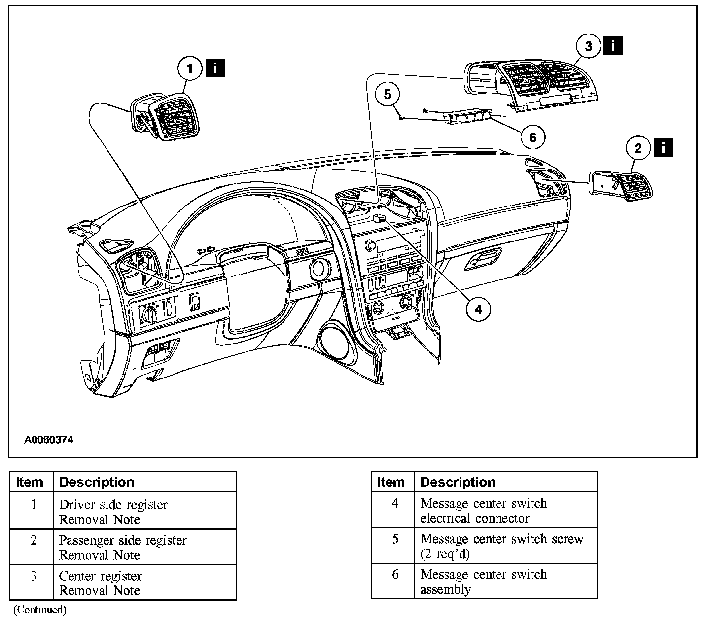 Item 1-2: Driver Side and Passenger Side Register Removal Note