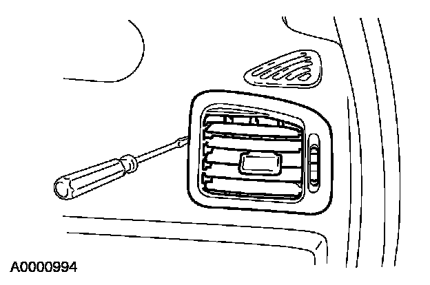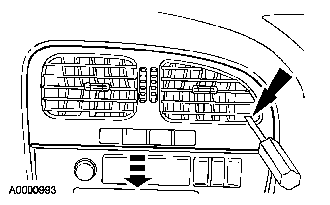 1. Depress the inboard side tab with a flat blade tool. Pull the register rearward, depress the outboard tab and remove the register.