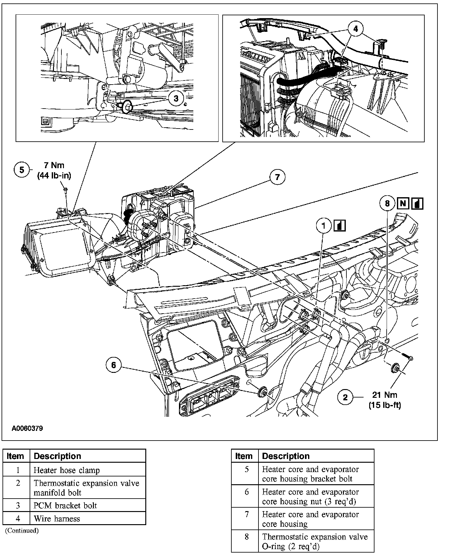 - If a heater core leak is suspected, the heater core must be leak tested before it is removed from the vehicle.