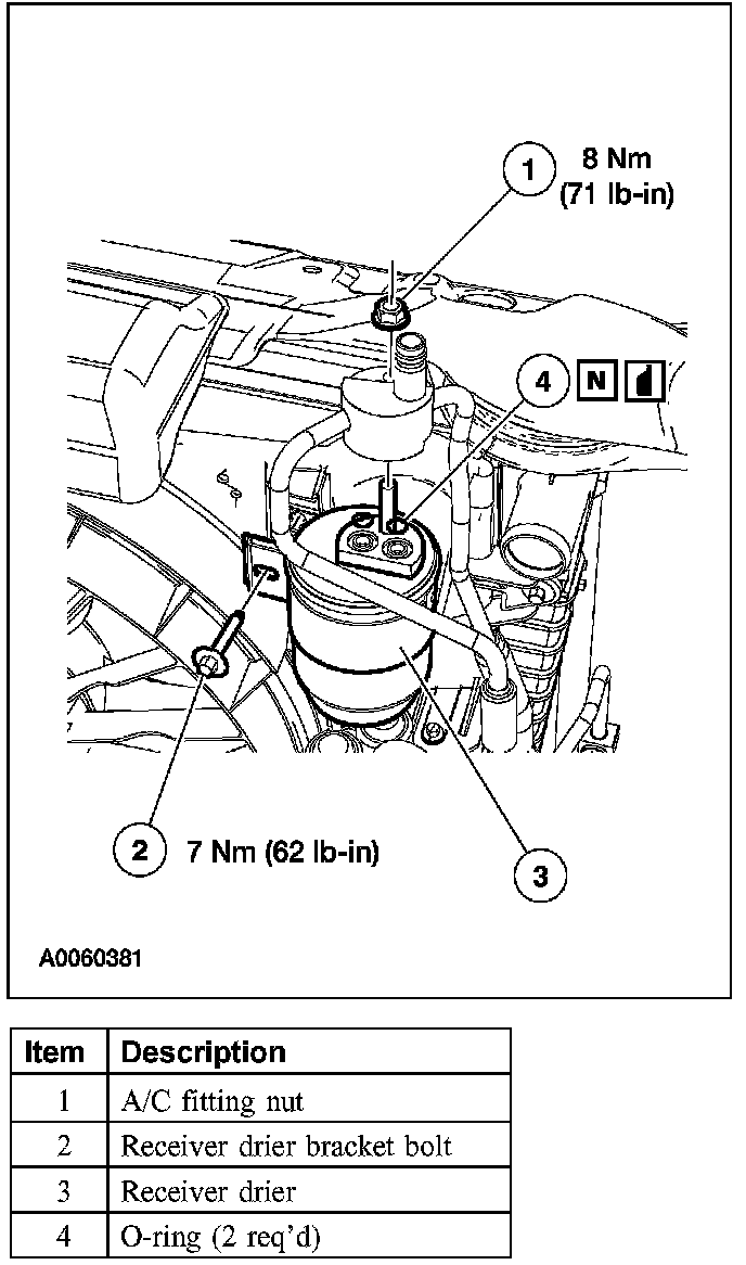 - Installation of a new receiver drier is not required when repairing the air conditioning system except when there is physical evidence of contamination from a failed A/C compressor or damage to the receiver drier.