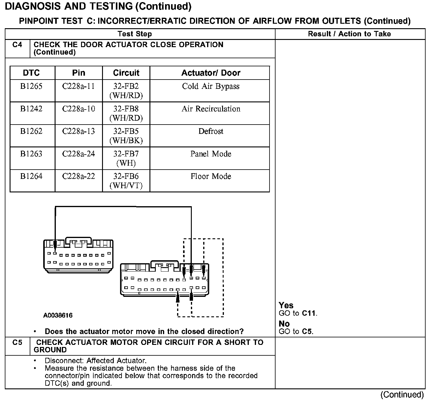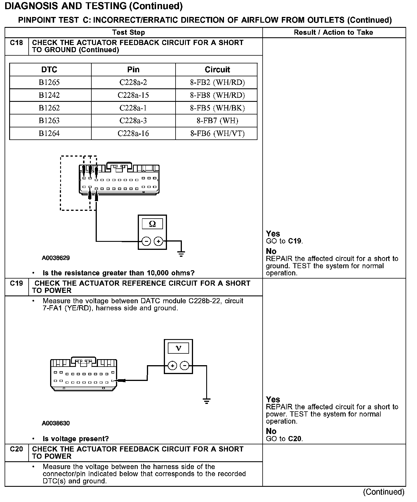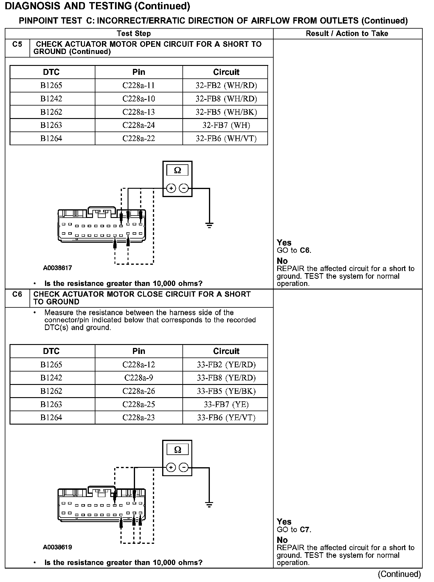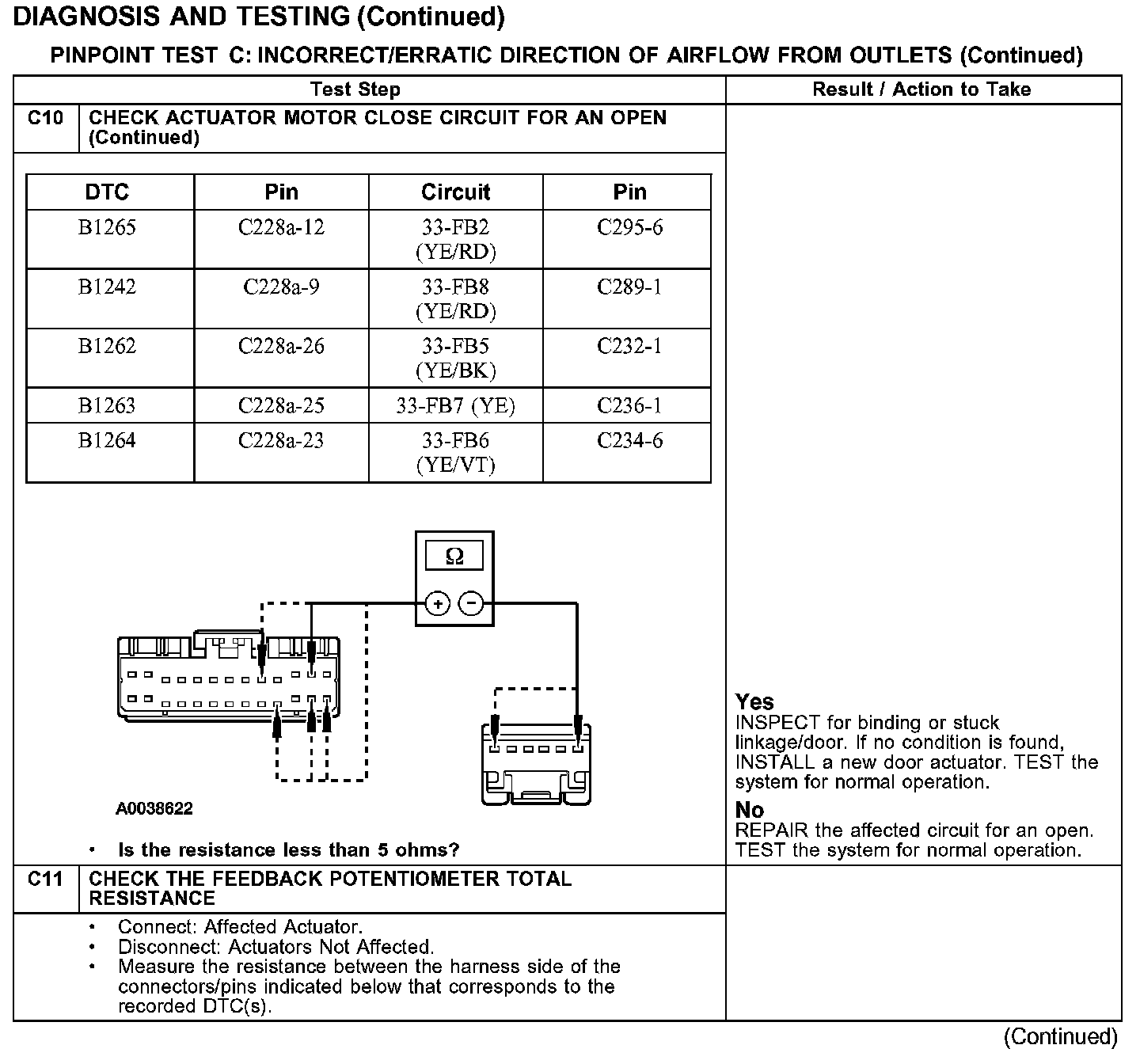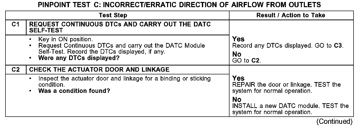 PINPOINT TEST C: INCORRECT/ERRATIC DIRECTION OF AIRFLOW FROM OUTLETSTest C1-C2: