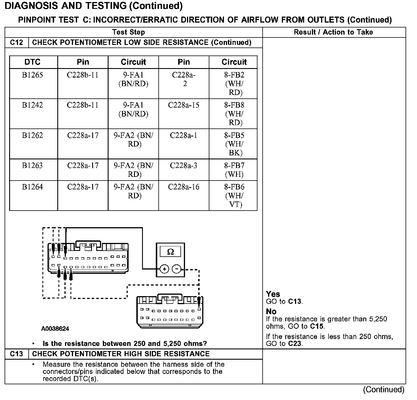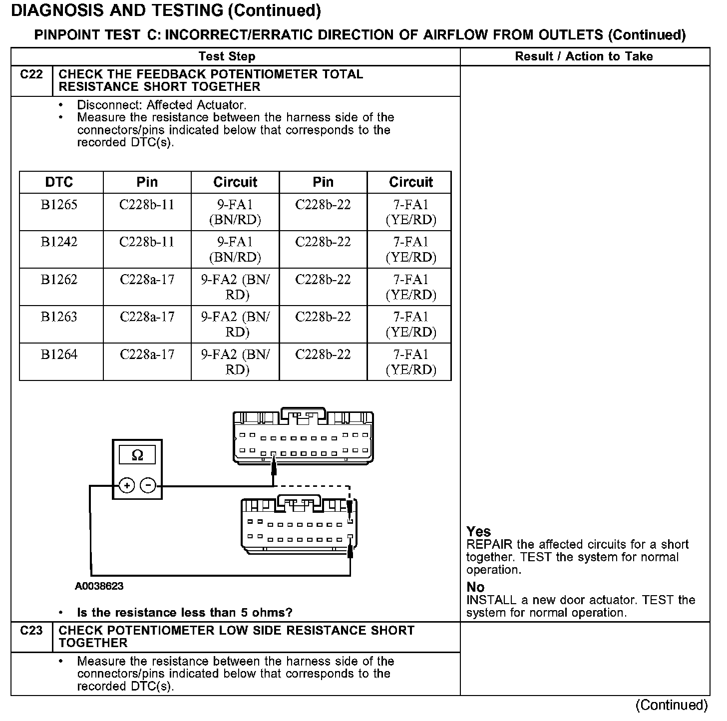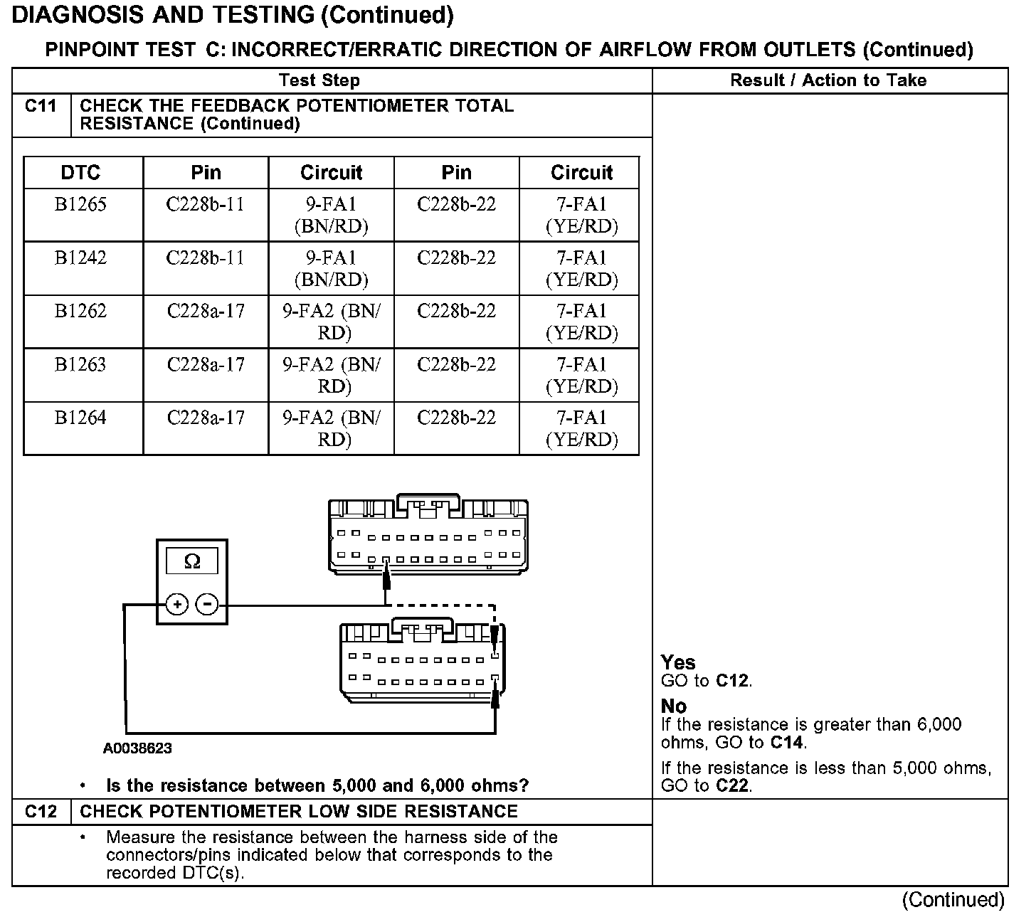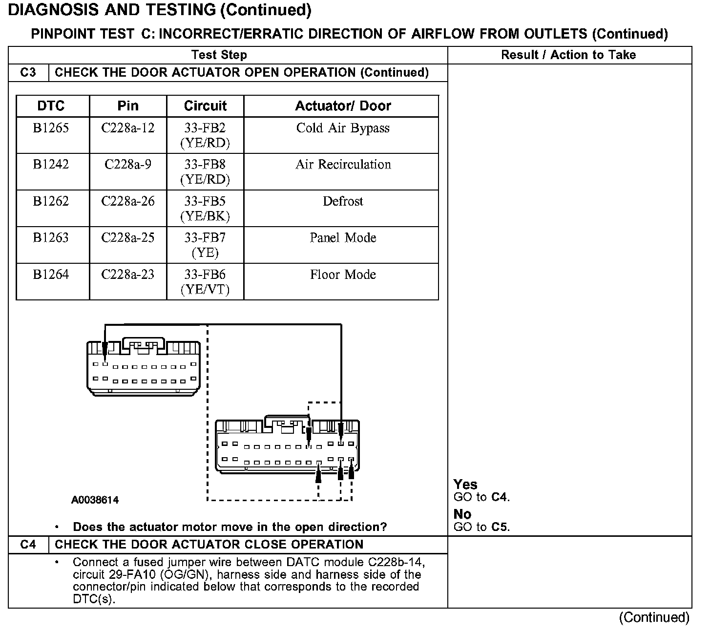 PINPOINT TEST C: INCORRECT/ERRATIC DIRECTION OF AIRFLOW FROM OUTLETSTest C1-C2: