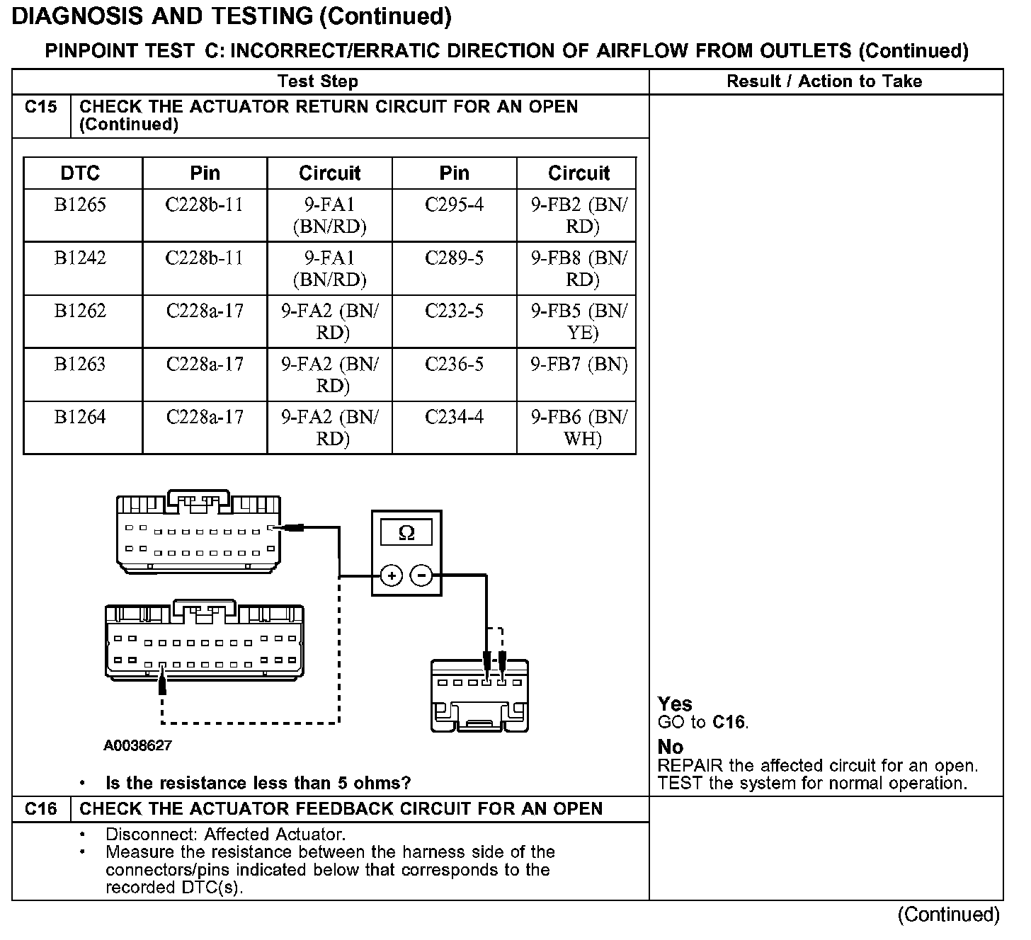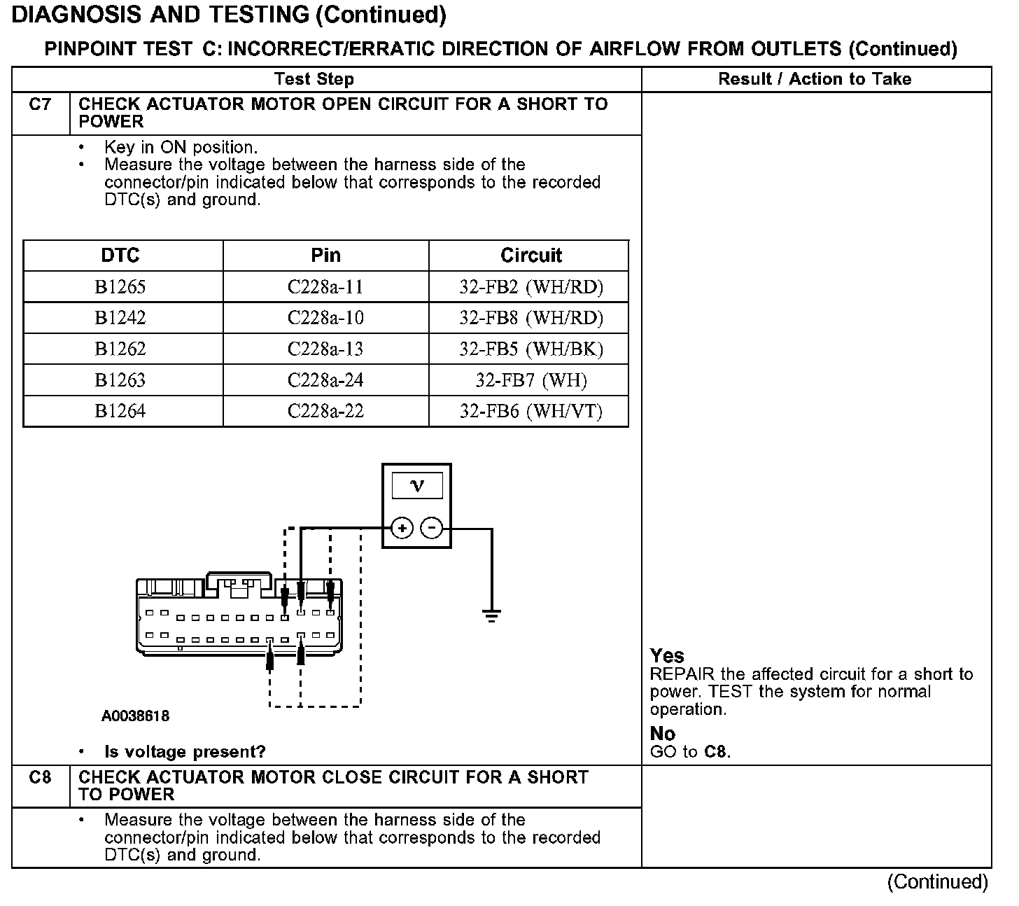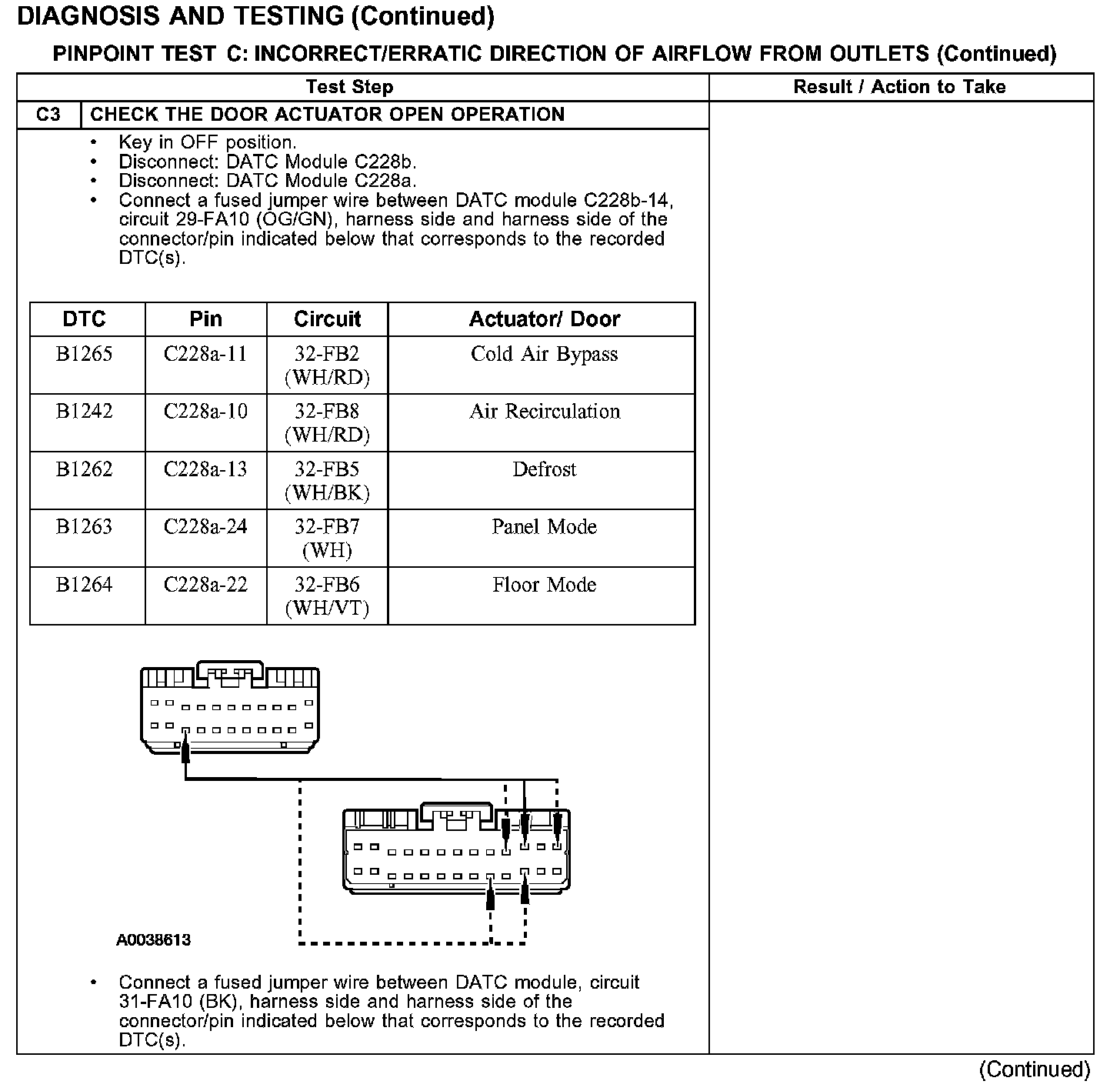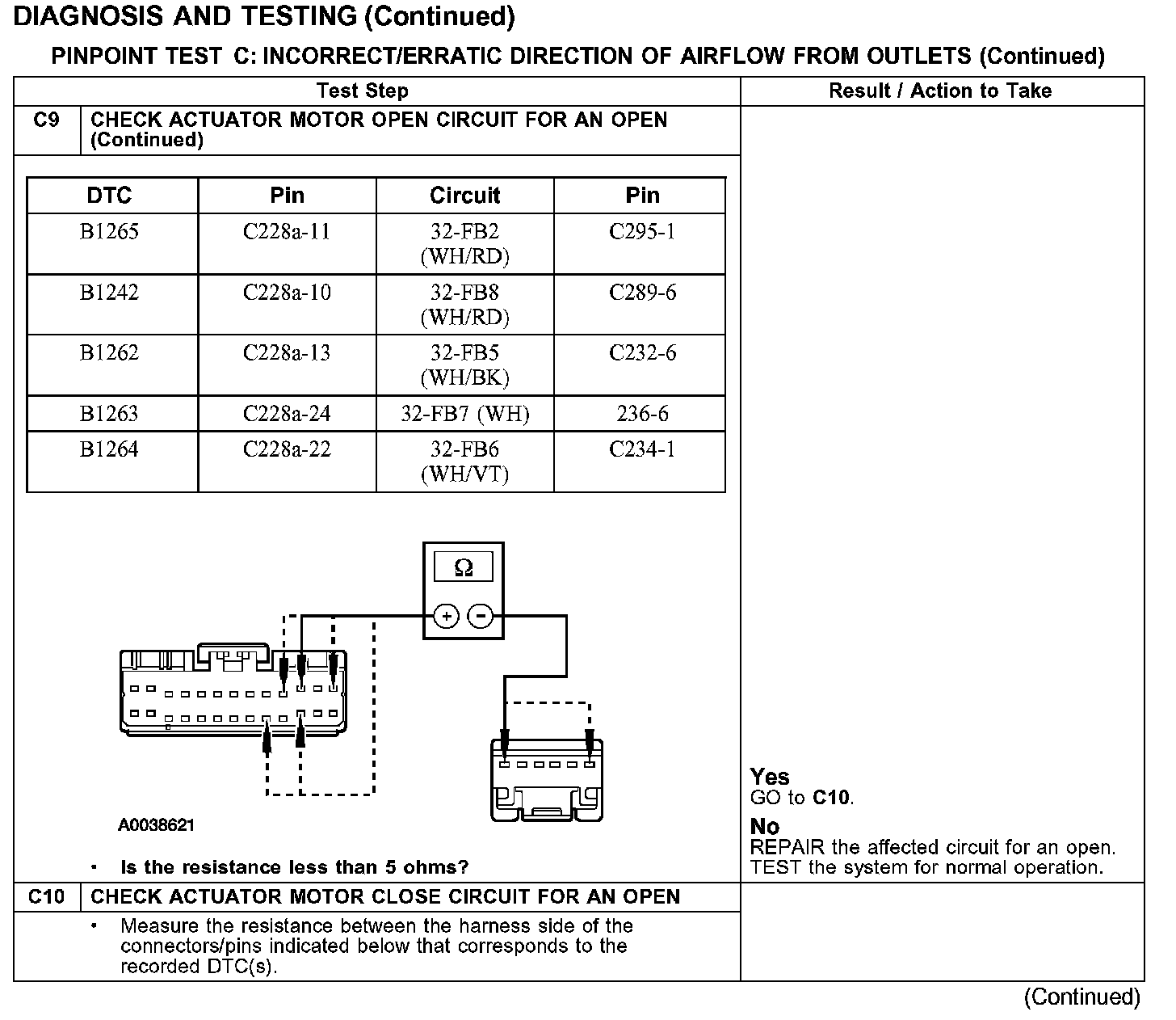 PINPOINT TEST C: INCORRECT/ERRATIC DIRECTION OF AIRFLOW FROM OUTLETSTest C1-C2: