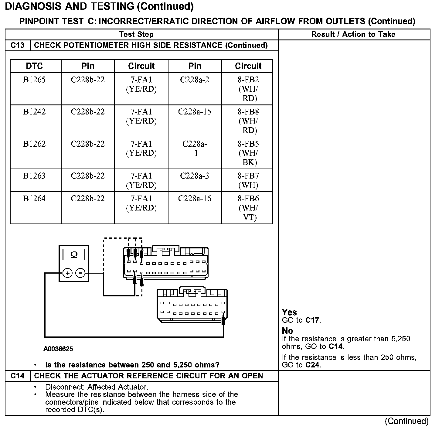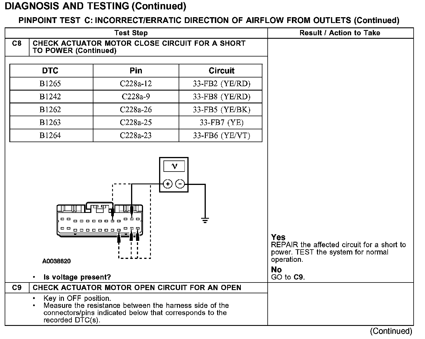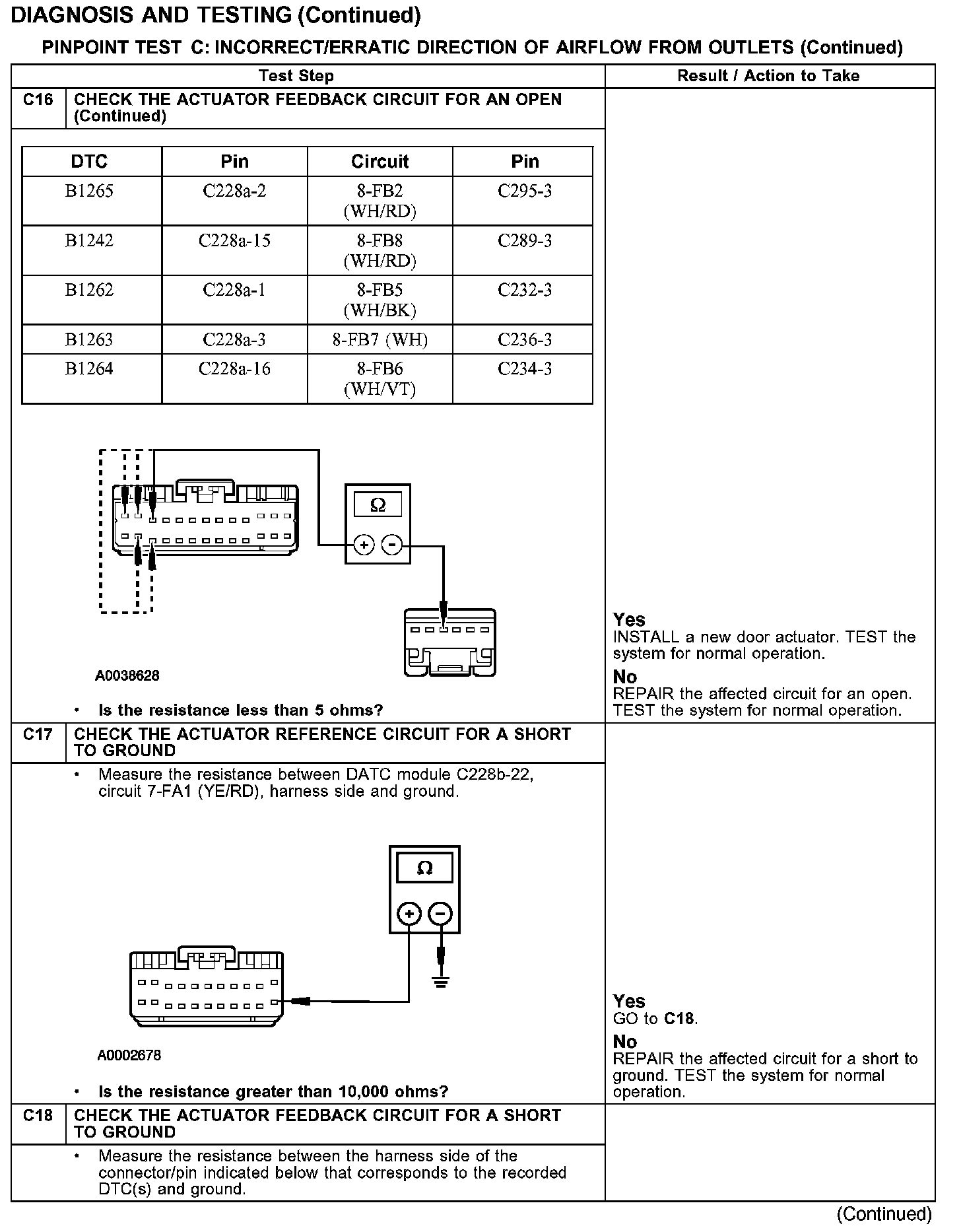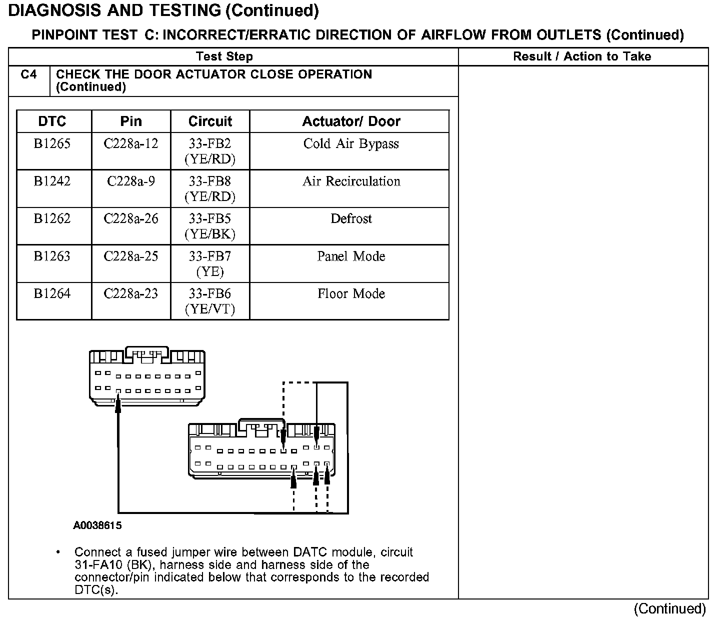 PINPOINT TEST C: INCORRECT/ERRATIC DIRECTION OF AIRFLOW FROM OUTLETSTest C1-C2: