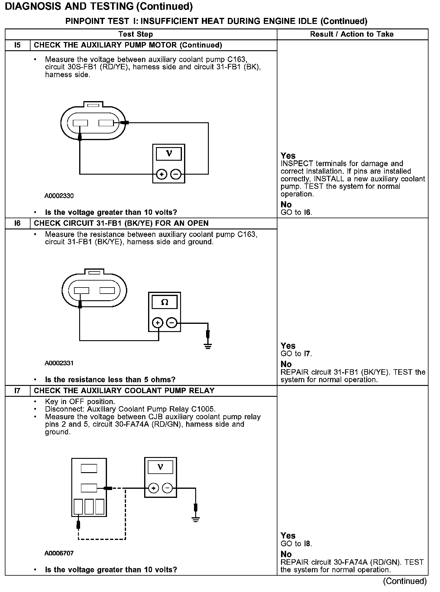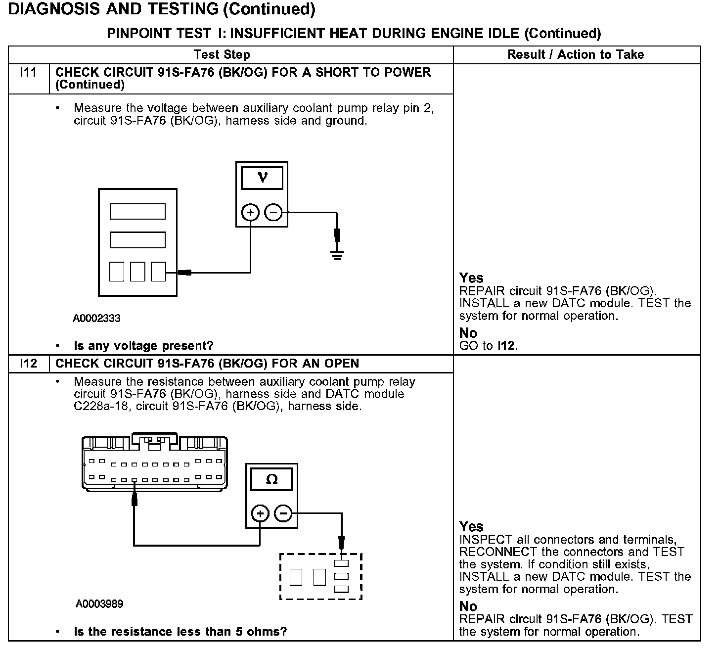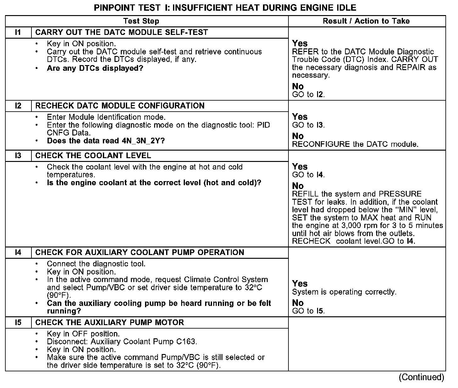 PINPOINT TEST I: INSUFFICIENT HEAT DURING ENGINE IDLETest I1-I5: