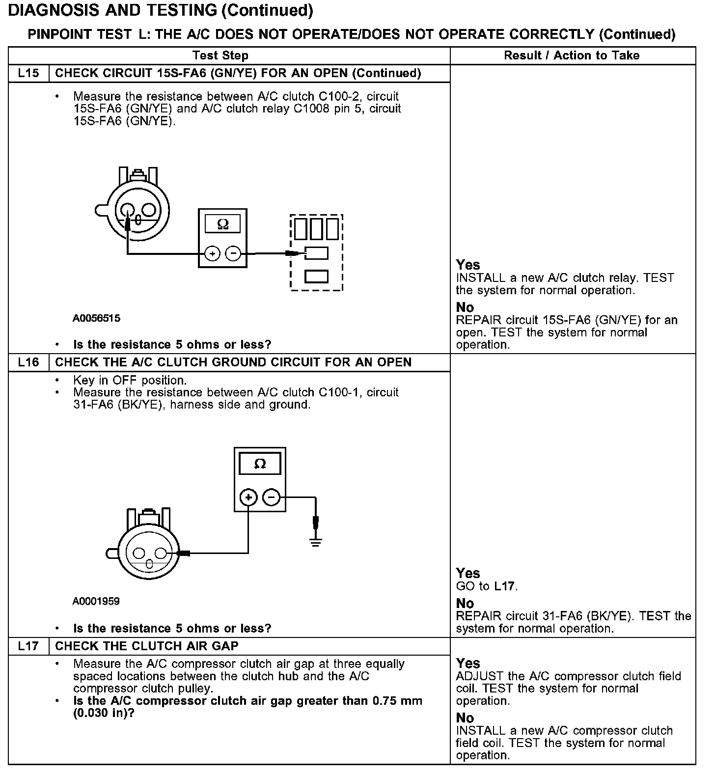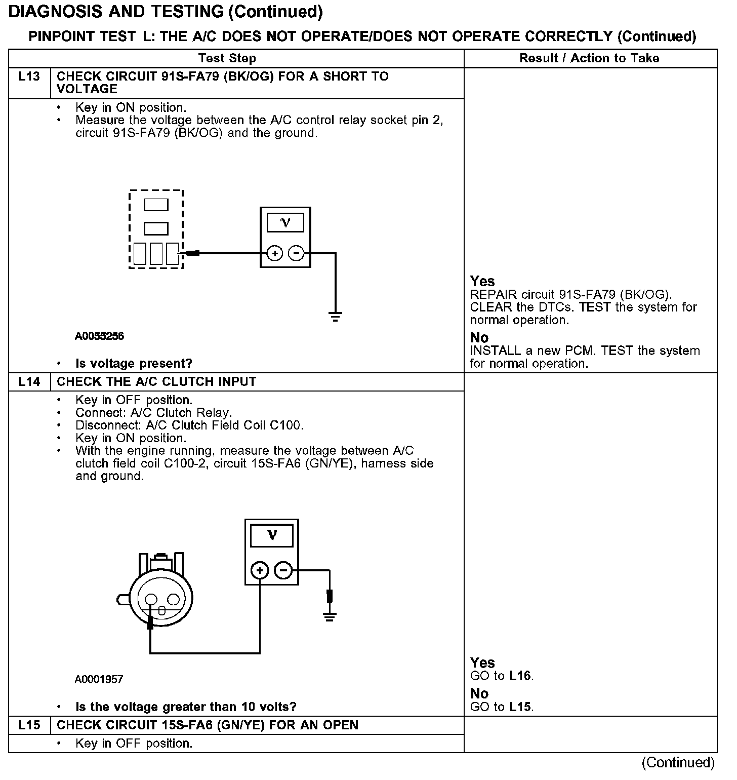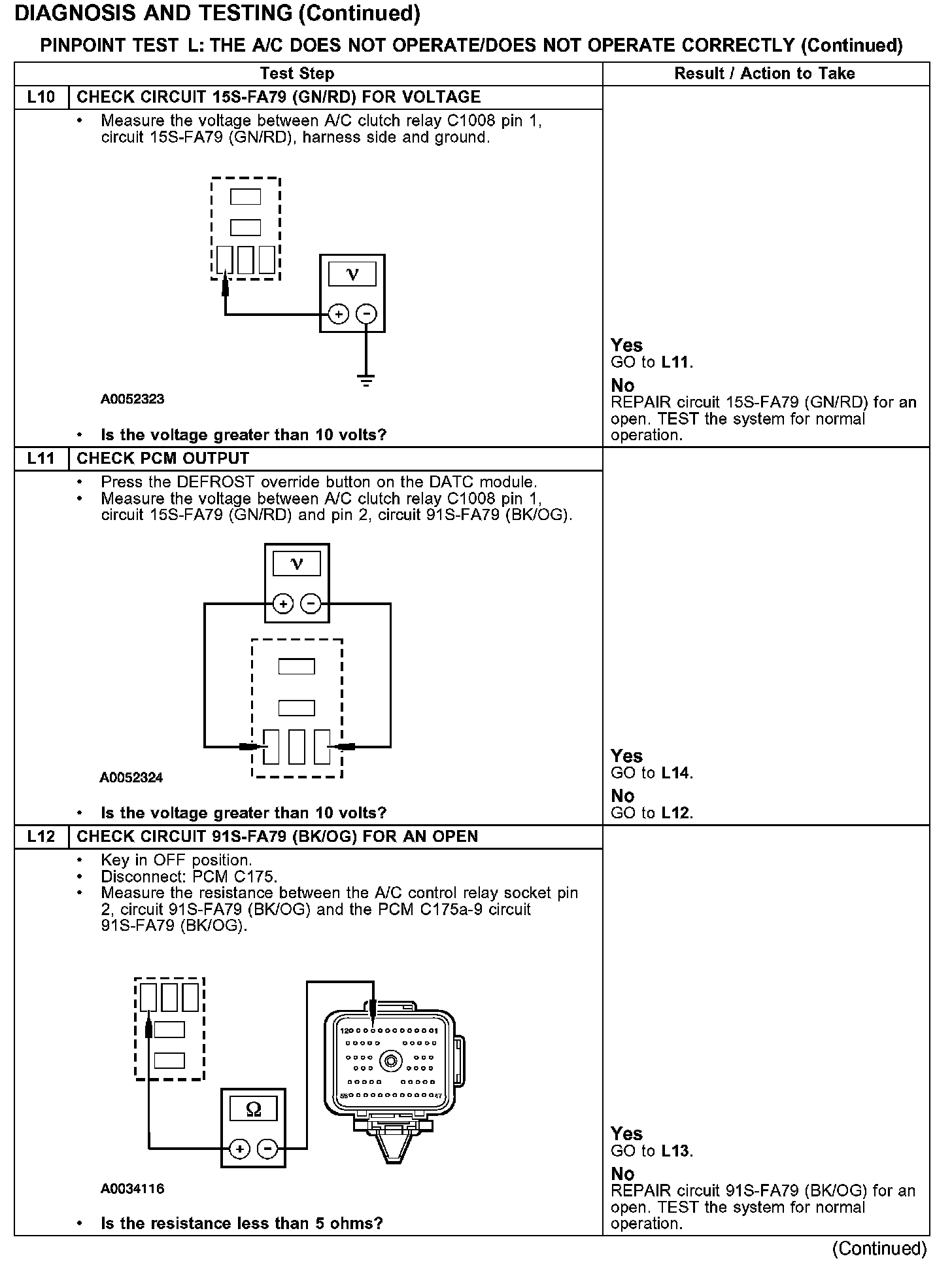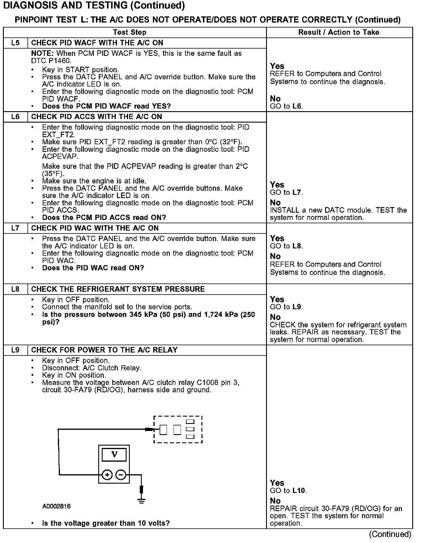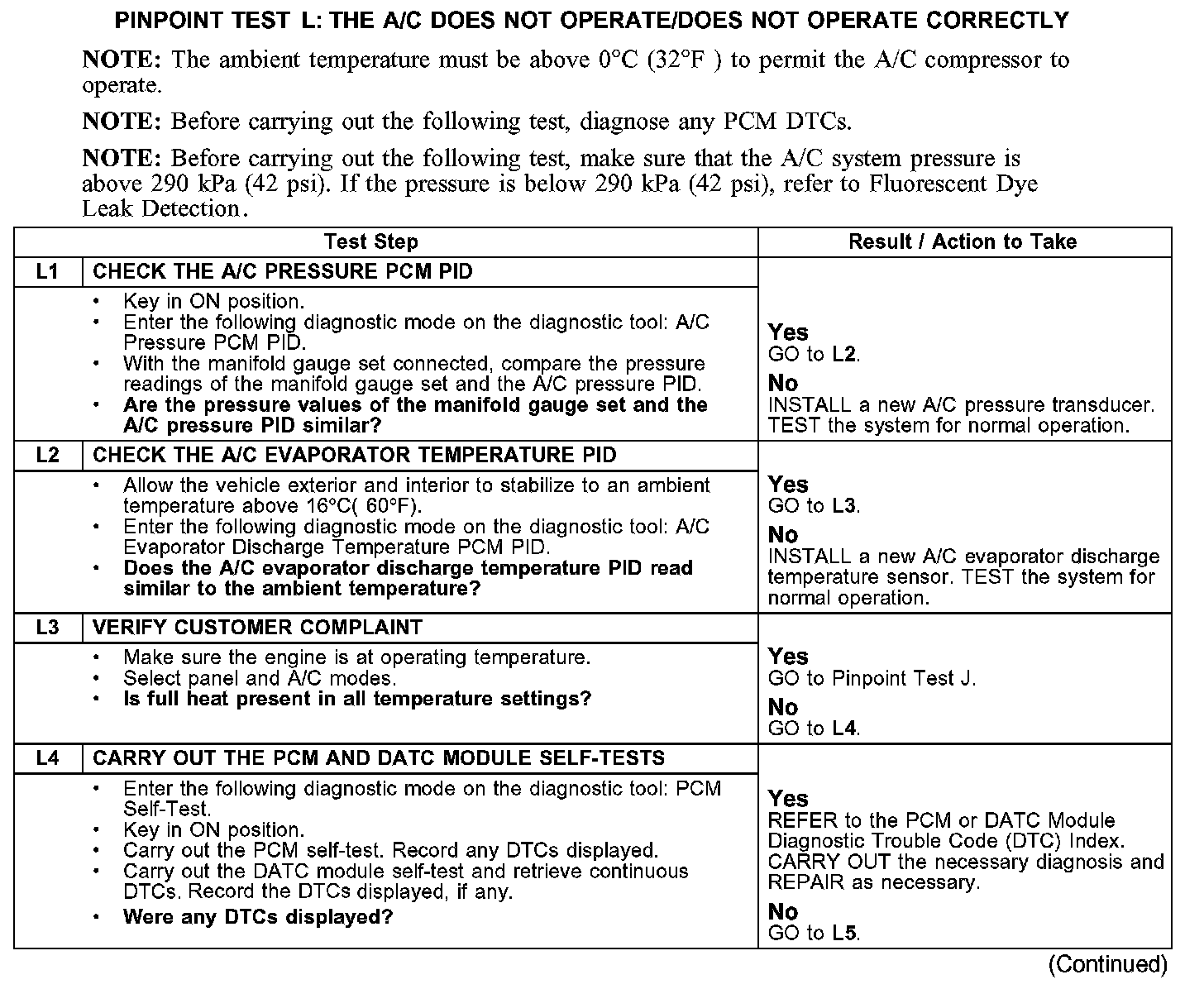 PINPOINT TEST L: THE A/C DOES NOT OPERATE/DOES NOT OPERATE CORRECTLYTest L1-L4: