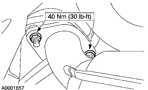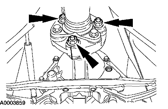 2. CAUTION: Install the bolts, washers, and nuts in their original position or driveshaft imbalance can occur. Install the driveshaft flex coupling bolts with the head of the bolt seated against the flange, and the nuts seated against the flex coupling.