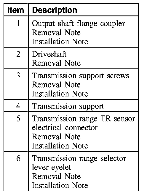 Item 6: Transmission Range Selector Lever Eyelet Removal Note