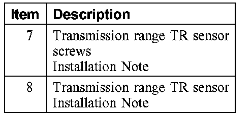 Item 7: Transmission Range TR Sensor Screws Installation Note