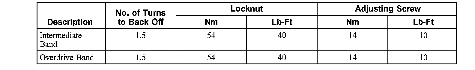 Band Adjustment and Torque Chart