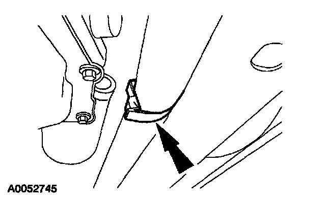 2. Remove the LH A/C suction line lower bracket bolt and position the bracket rearward.
