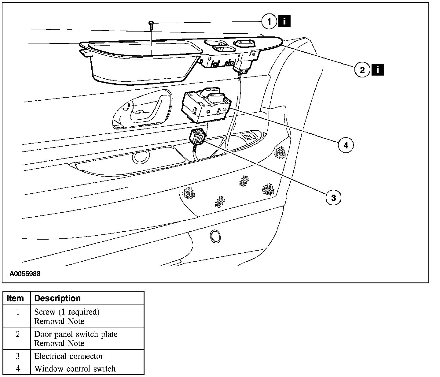 Item 2: Door Panel Switch Plate Removal Note