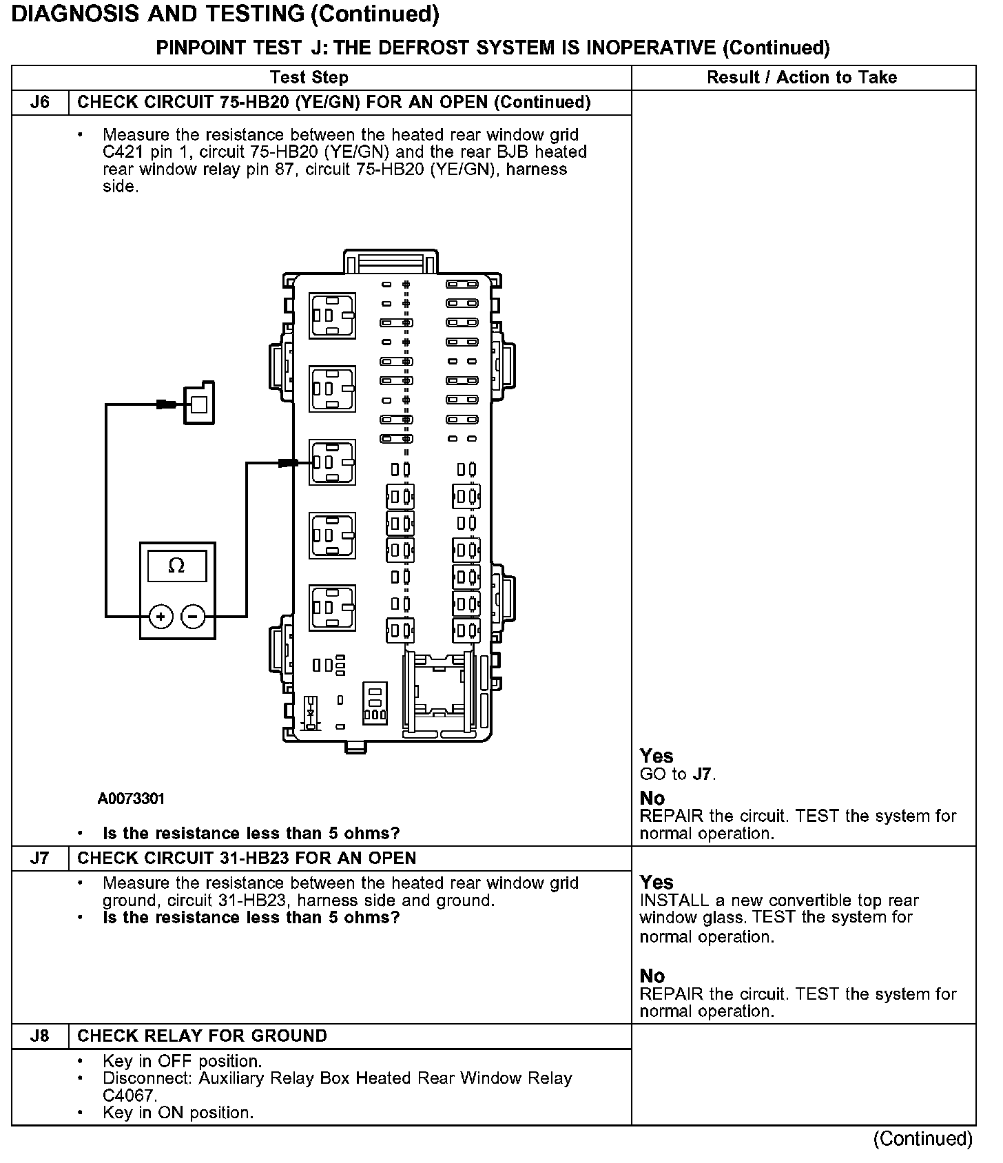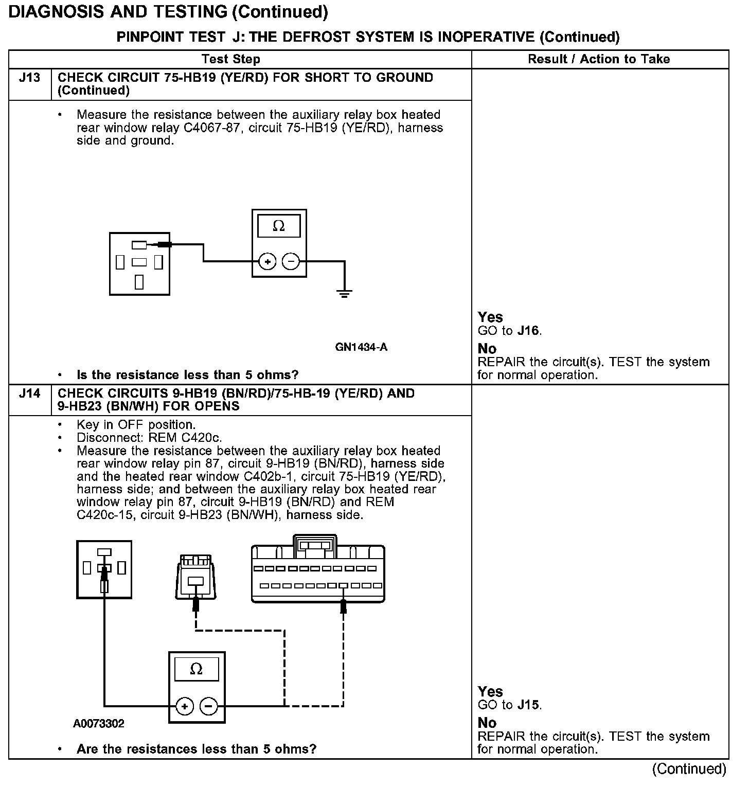 PINPOINT TEST J: THE DEFROST SYSTEM IS INOPERATIVE