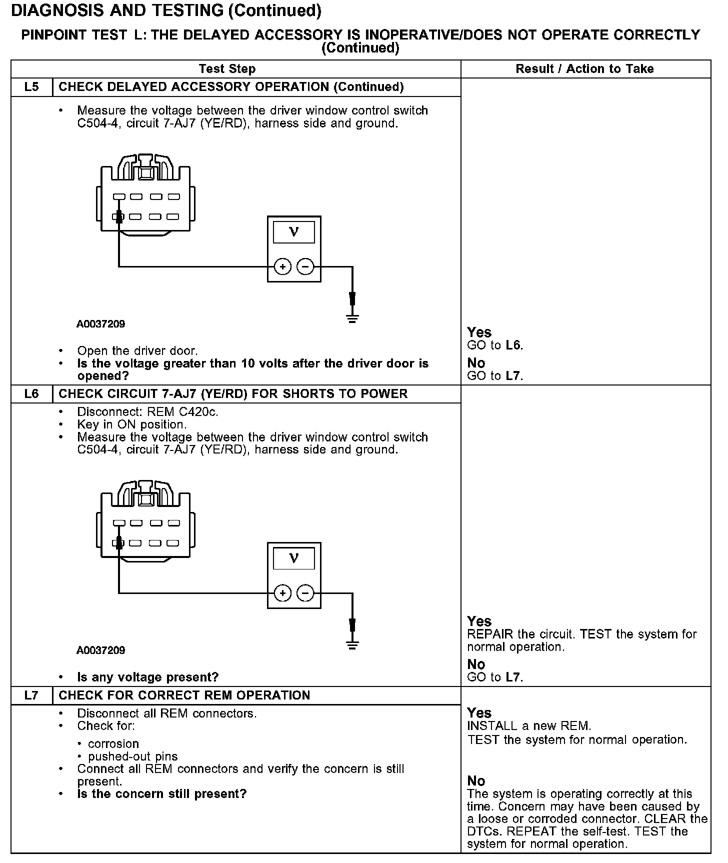 PINPOINT TEST L: THE DELAYED ACCESSORY IS INOPERATIVE/DOES NOT OPERATE CORRECTLYTest L1-L2: