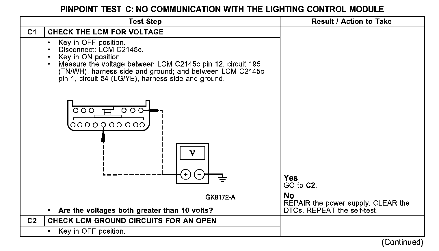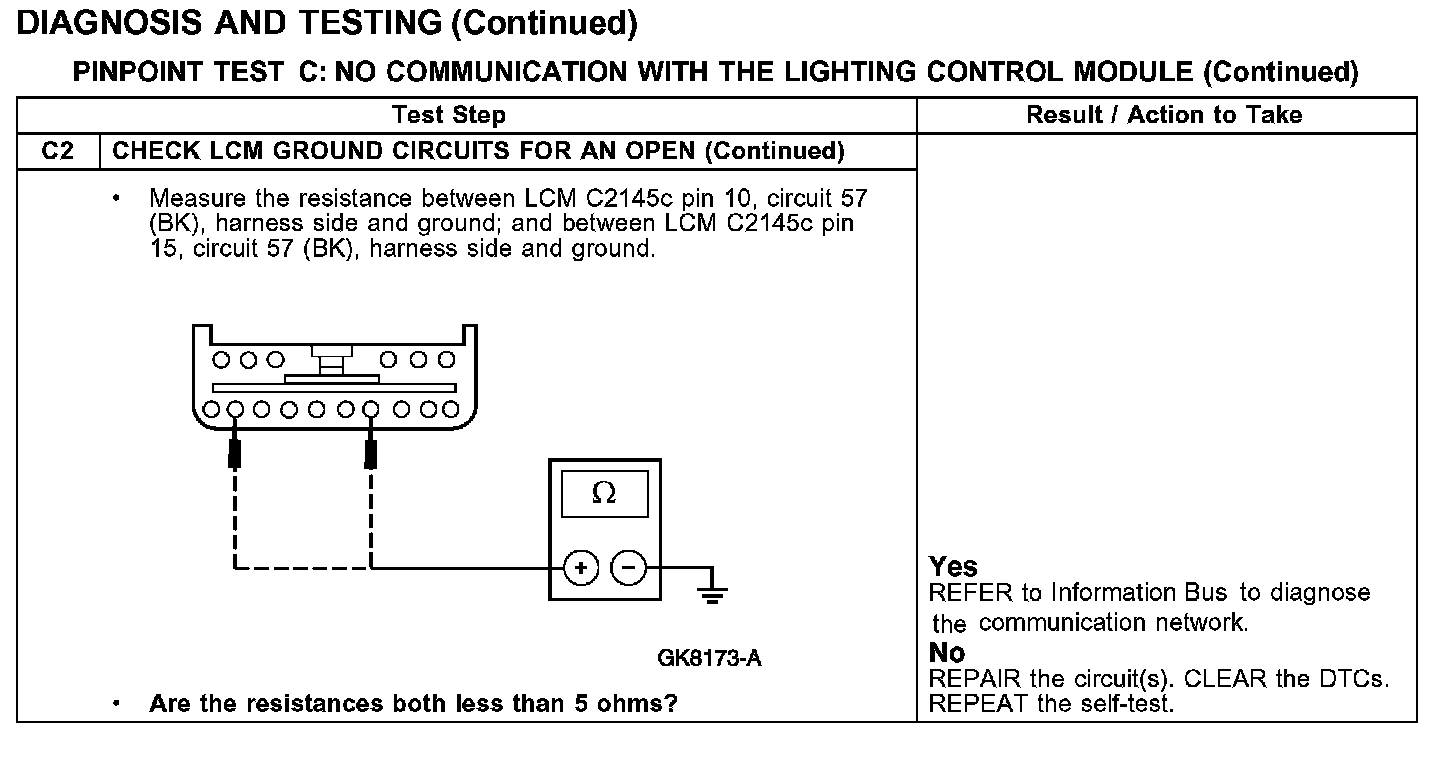 PINPOINT TEST C: NO COMMUNICATION WITH THE LIGHTING CONTROL MODULE