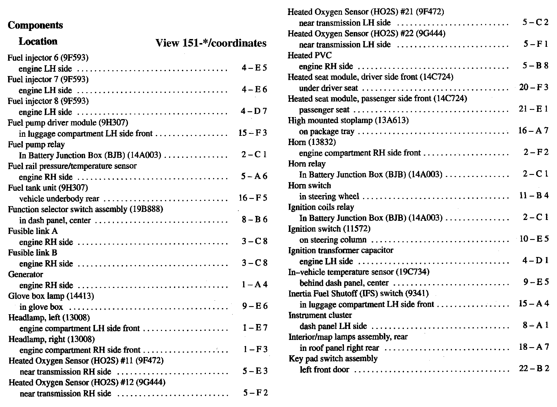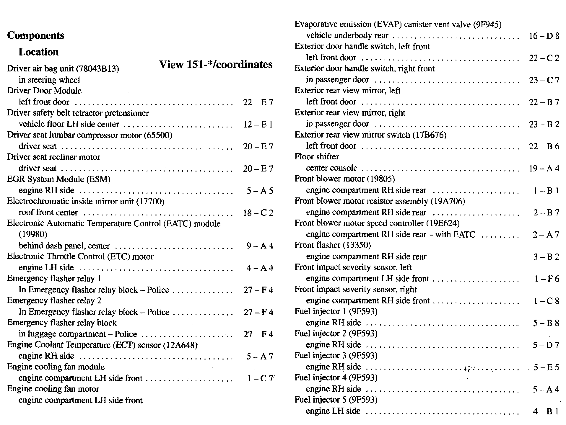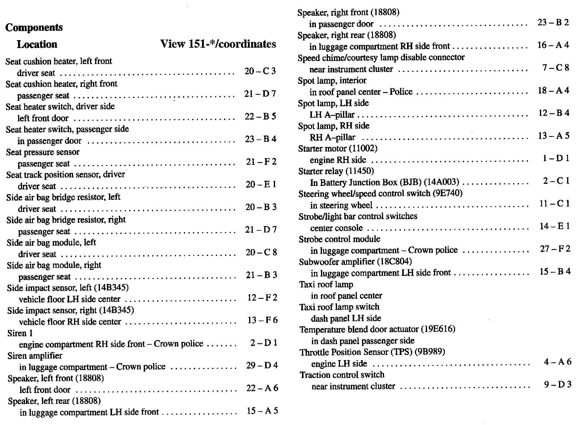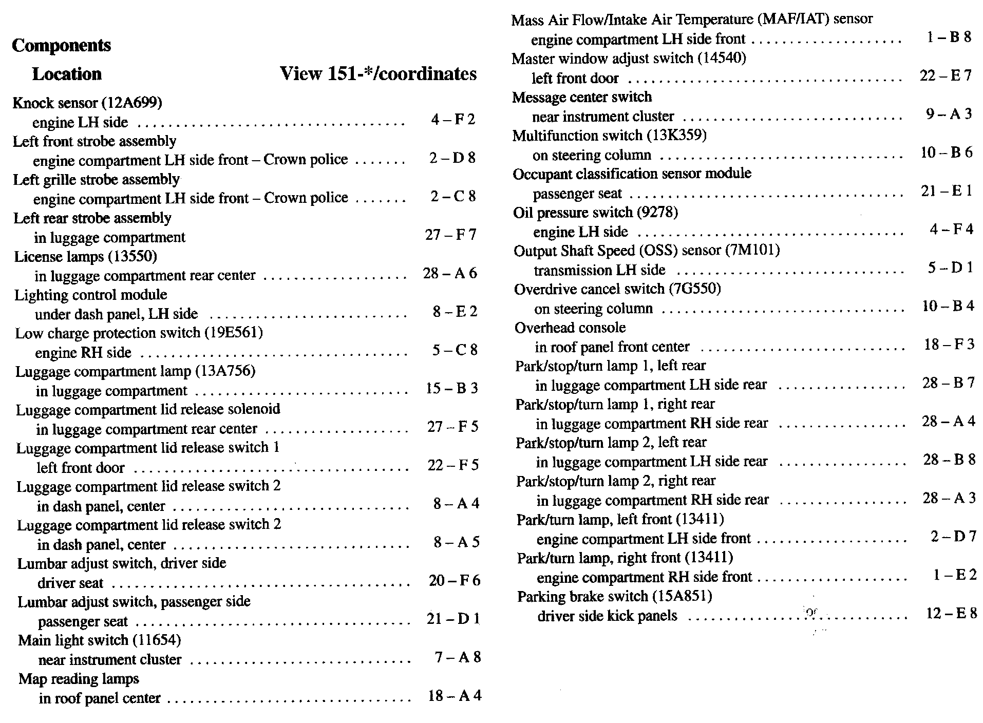 Component Location Index