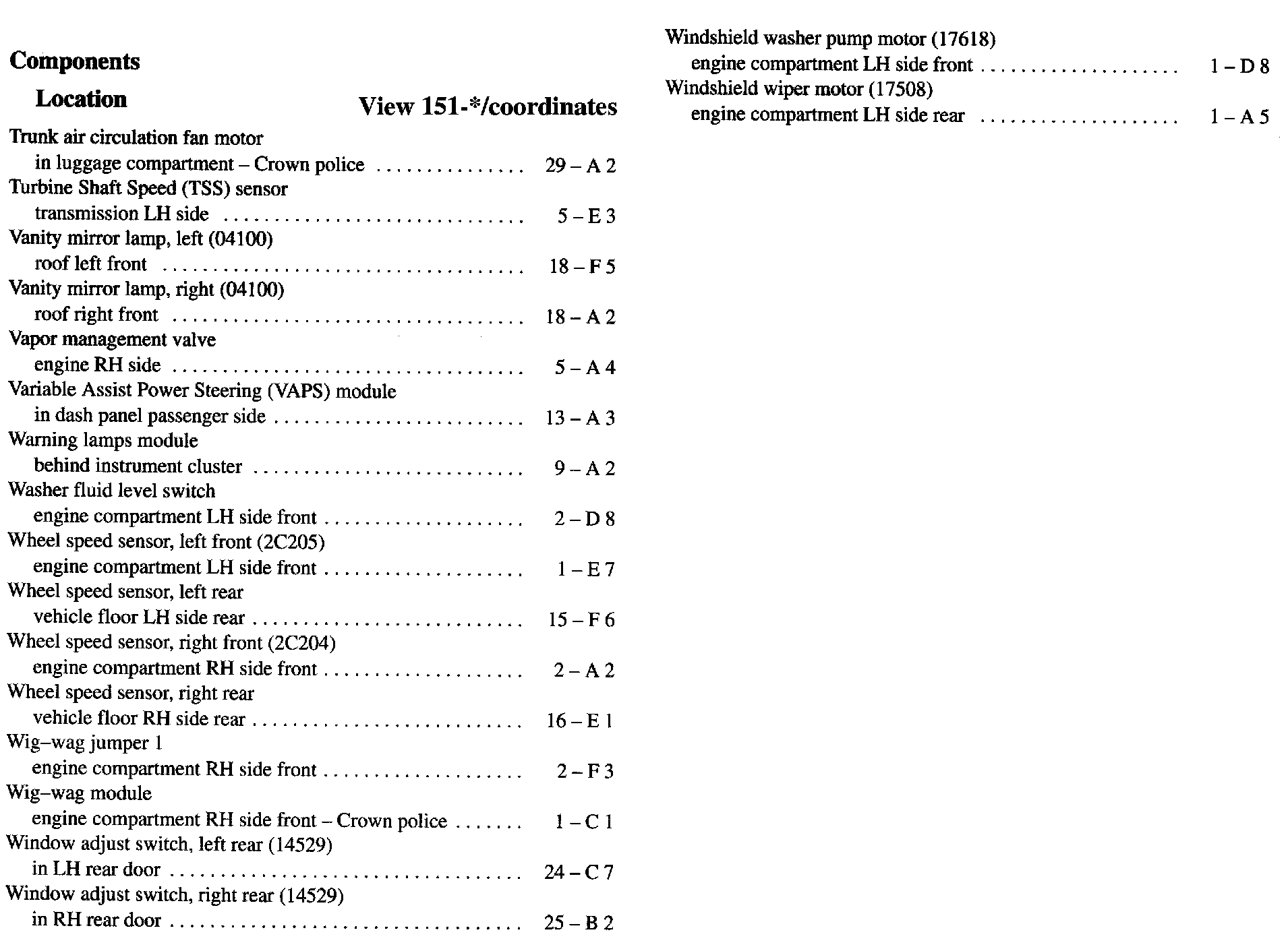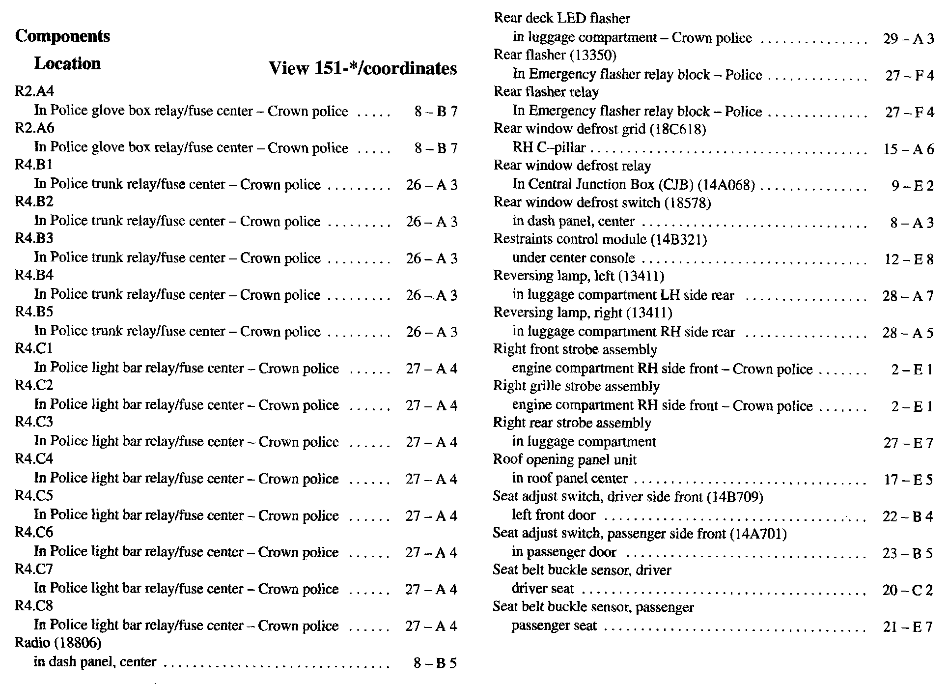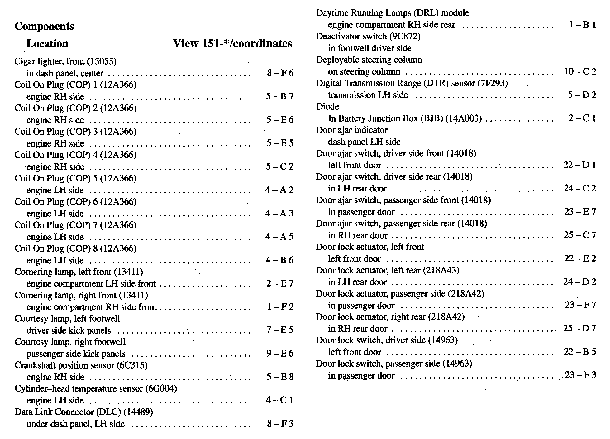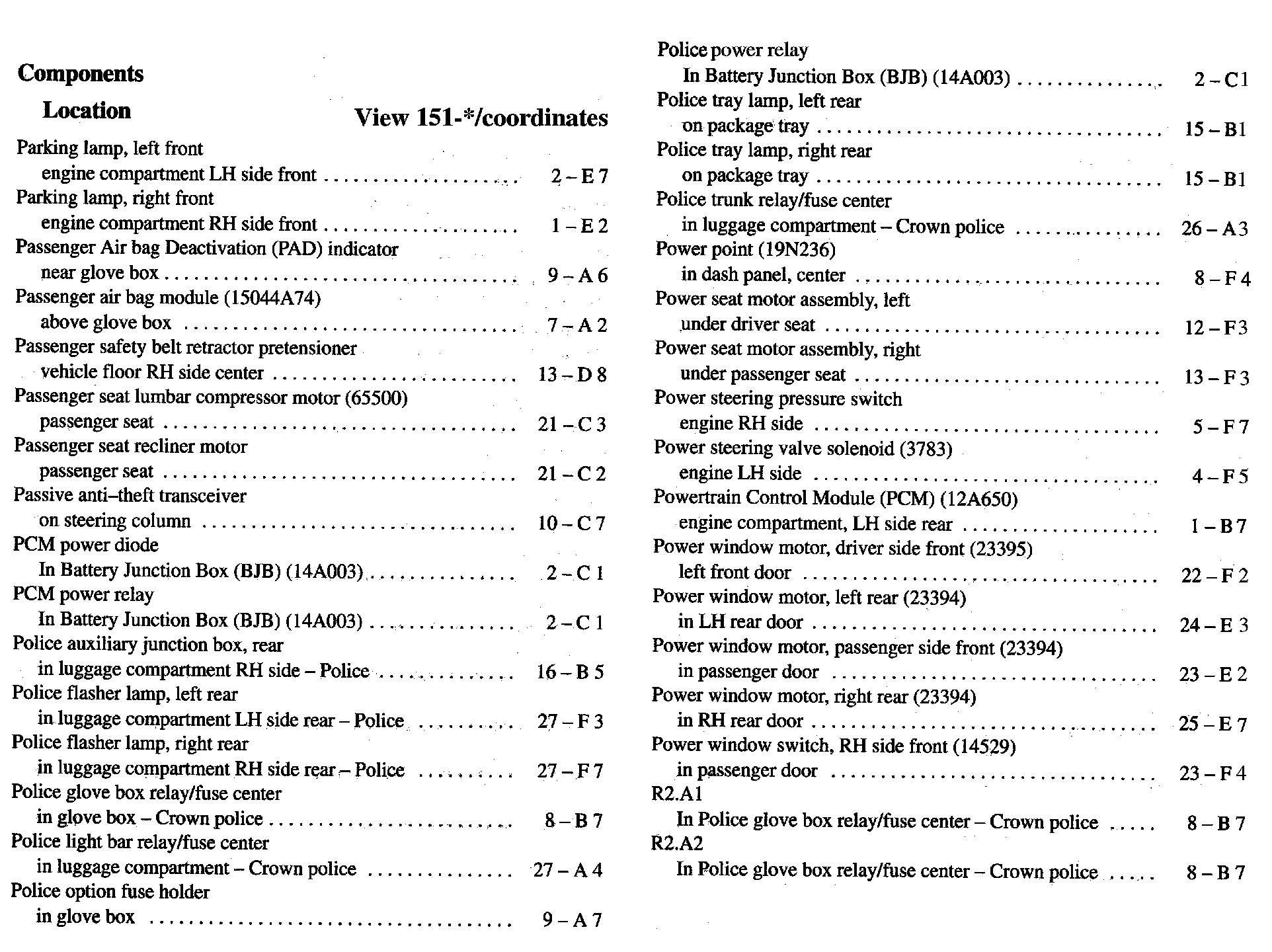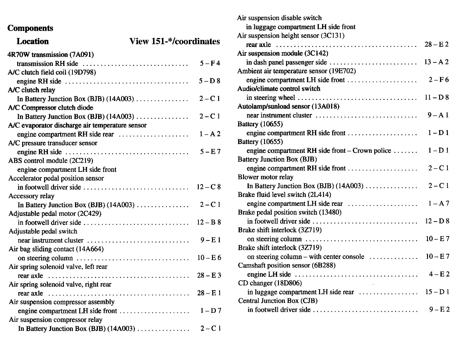 Component Location Index