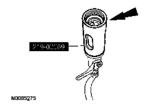 2. Inject the total vehicle PAG oil capacity minus 60 ml (2 fl oz) to the low-side service port during system charging.