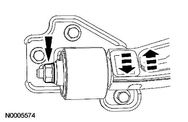 Caster is adjusted by loosening the lower arm rearward pivot bushing nut and moving the arm inward or outward. When adjusting the LH caster, a centering washer must be removed and discarded prior to adjusting.