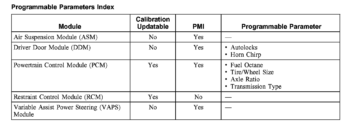 Programmable Parameters Index: