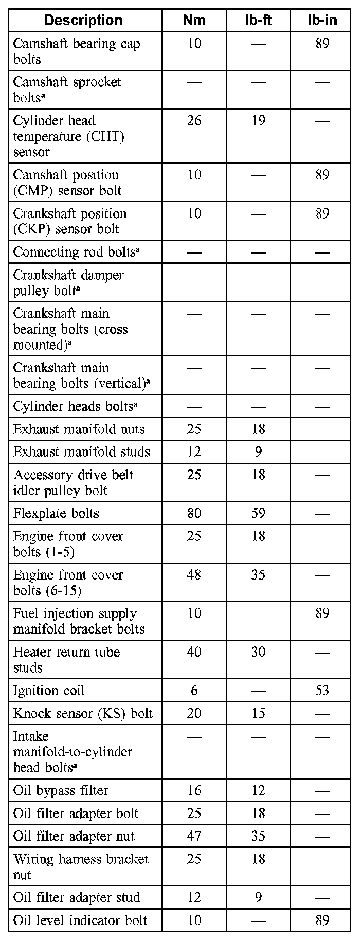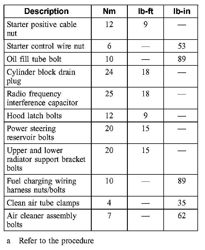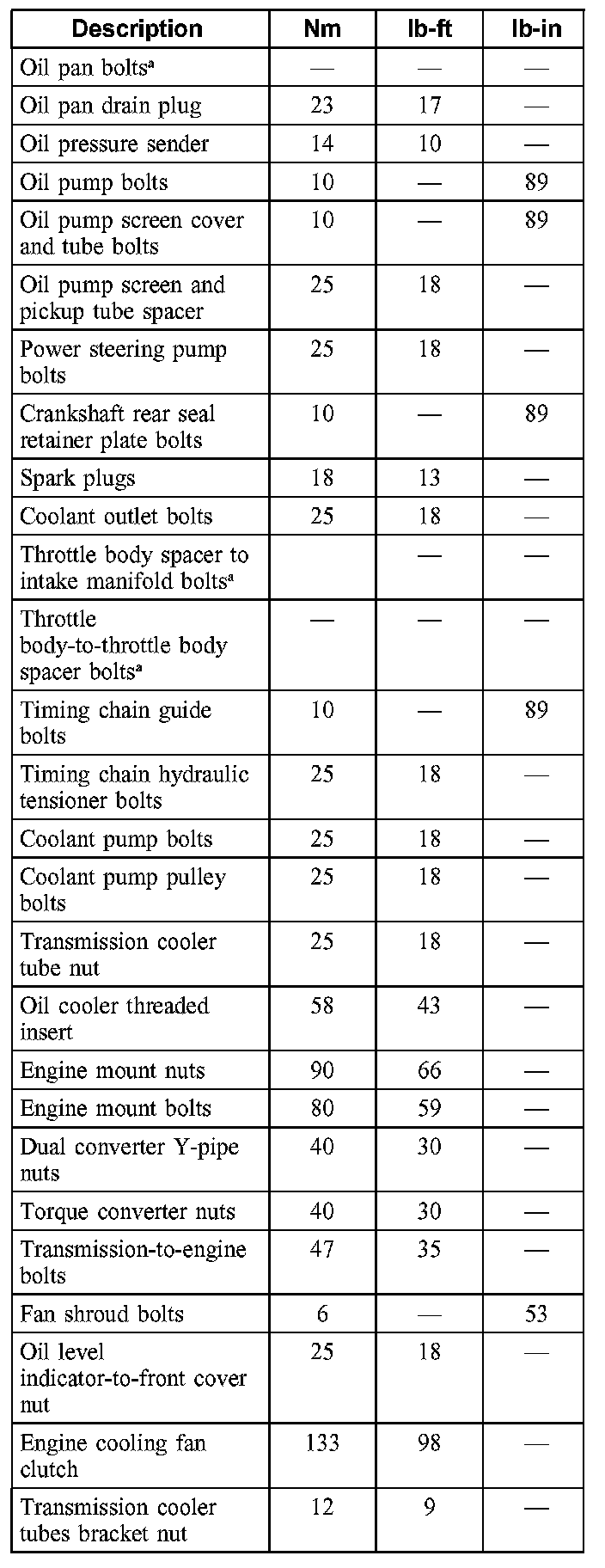 Torque Specifications