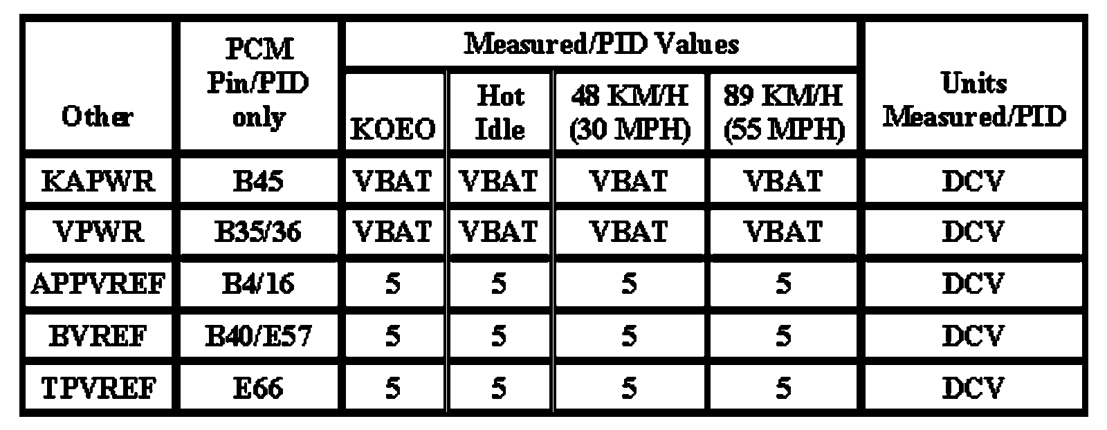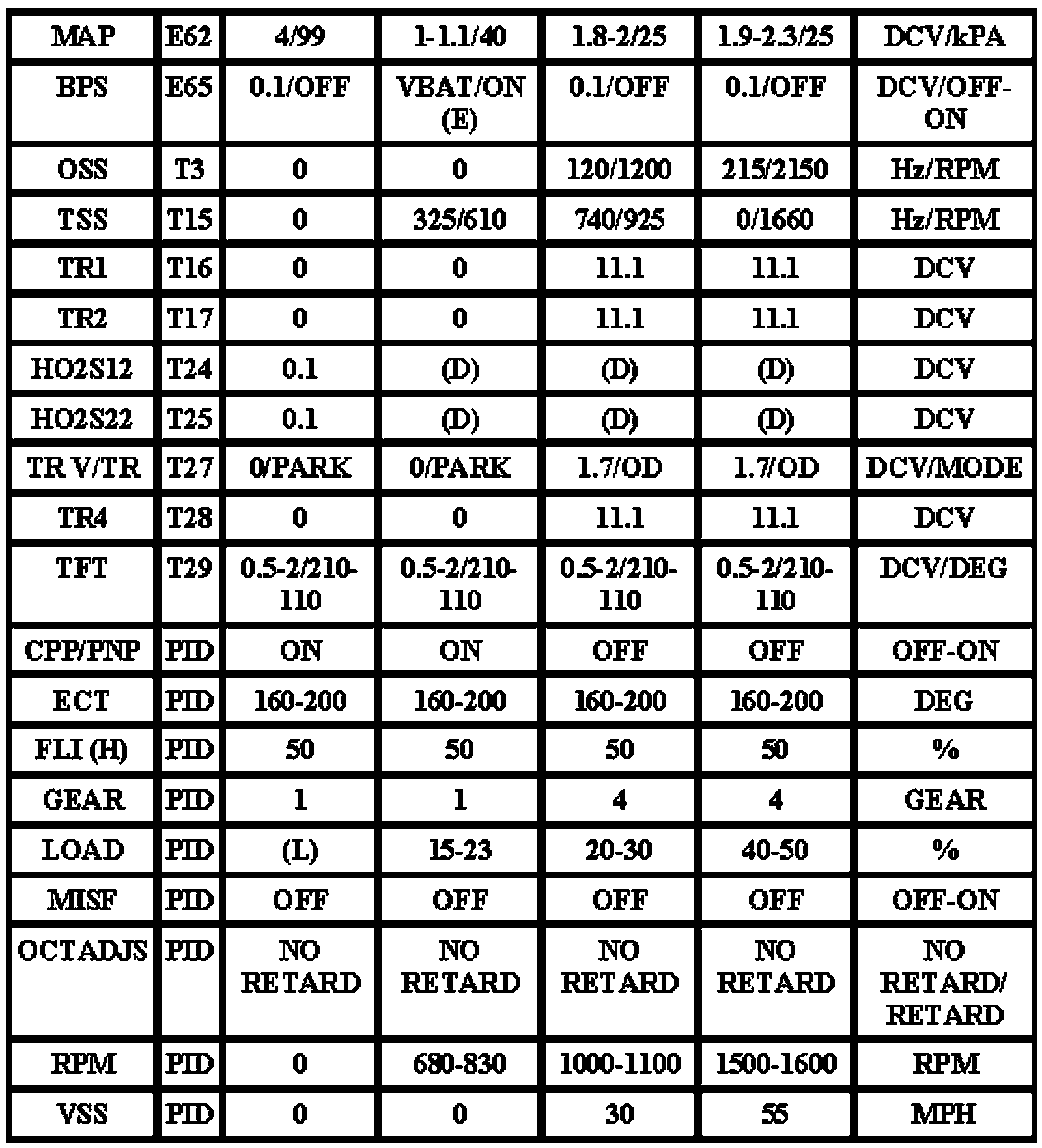 Note: All generic OBD readings under no load (PARK or NEUTRAL).